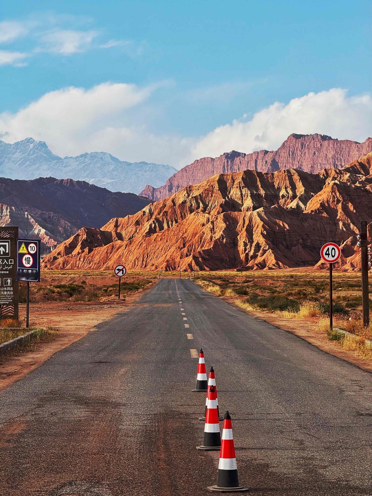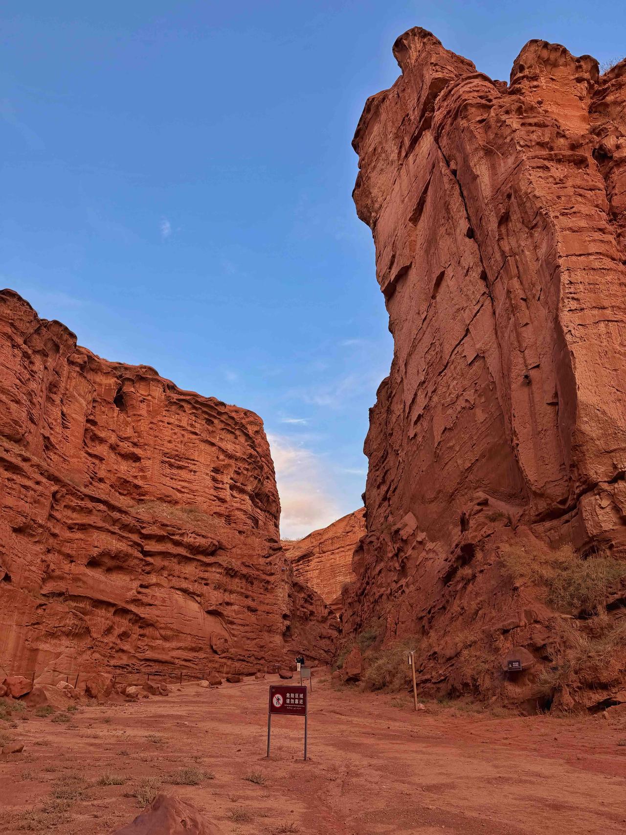 从阿克苏市区出发大约70公里,车程通常1个半小时左右,我更建议自驾或包车,自由度高。塔村和大峡谷都在温宿托木尔这条线里,动线本来就顺,自驾情况下一天串起来是可行的:前半天去塔村,后半天进大峡谷,会比只跑一个点更完整。真要拍得更出效果,我反而建议把大峡谷放在下午后半段。(出片攻略:下午日落🌄前那一段,红色岩壁会更有层次,整条峡谷会有一种被点燃的壮观感)