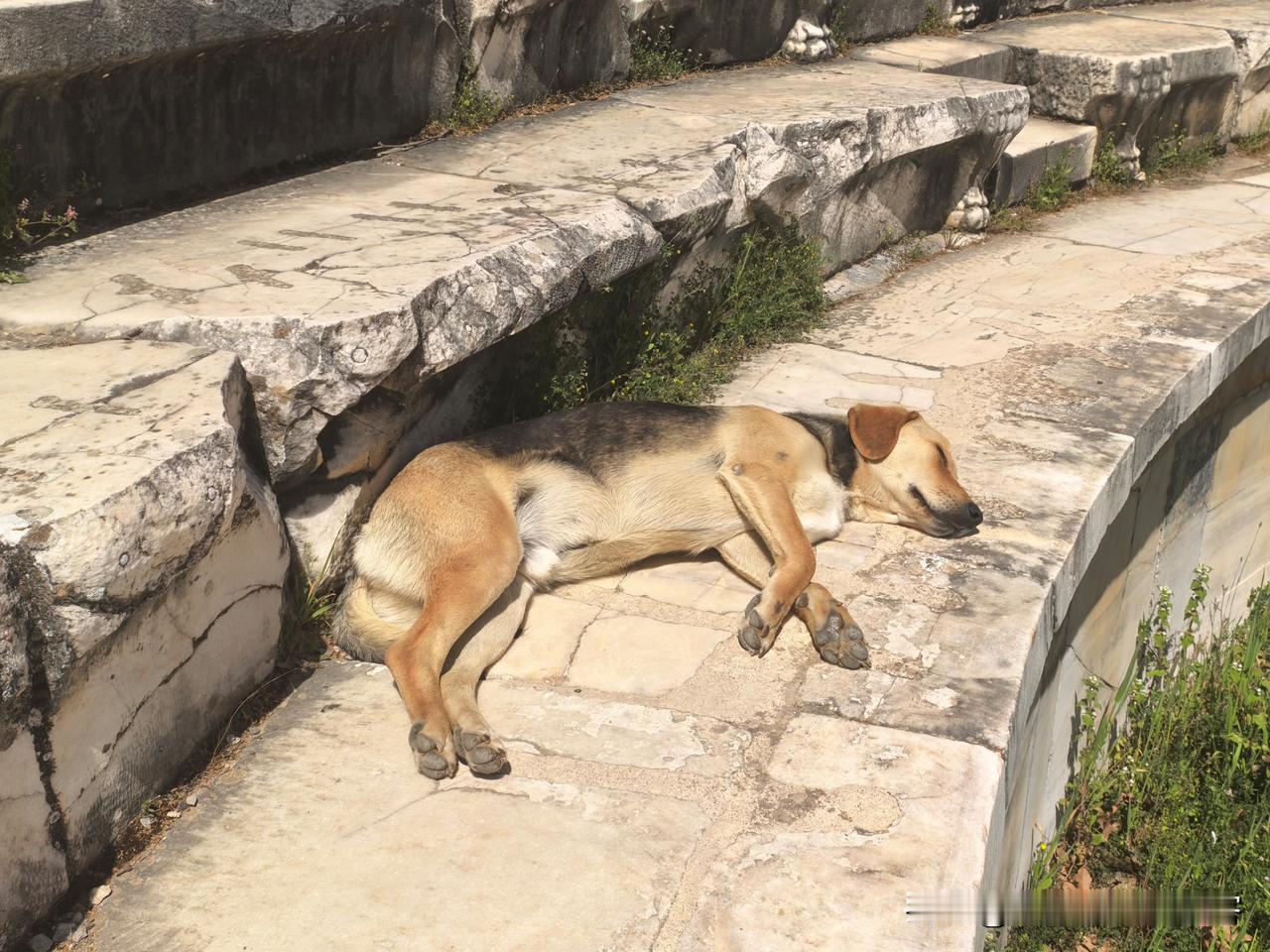 在阿芙罗狄西亚斯古城内,经过剧院遗址的时候,看见一条晒太阳的狗。在土耳其旅游,随处可见猫狗,不能惊扰,只能绕行~