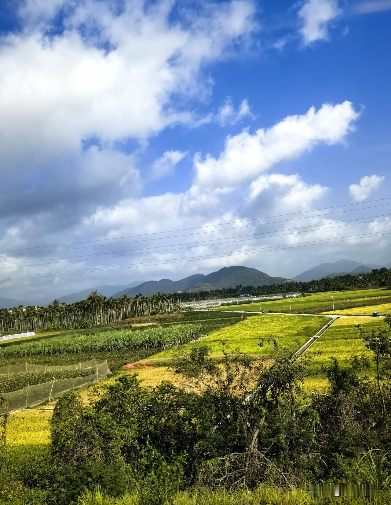 晒图笔记大赛澄澈蓝天缀着蓬松白云,远山如黛,层峦叠翠。成片椰林亭亭玉立,黄绿相间的稻田铺展成画,沟渠纵横,阡陌交通。近处草木葱茏,生机盎然,风过稻浪翻涌,椰影婆娑,一派海南乡野的明媚盛景,满是治愈的烟火与诗意。