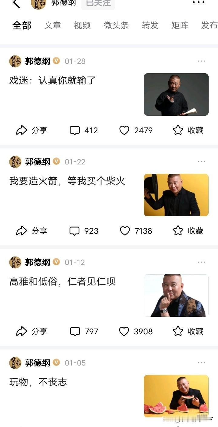 都说曹云金爱蹭郭德纲的流量,老是提过去的事,其实,郭德纲也喜欢蹭曹云金的流量,也爱提过去的事。比如多少年过去了,他现在还提什么高雅与低俗,提什么认真你就输了。