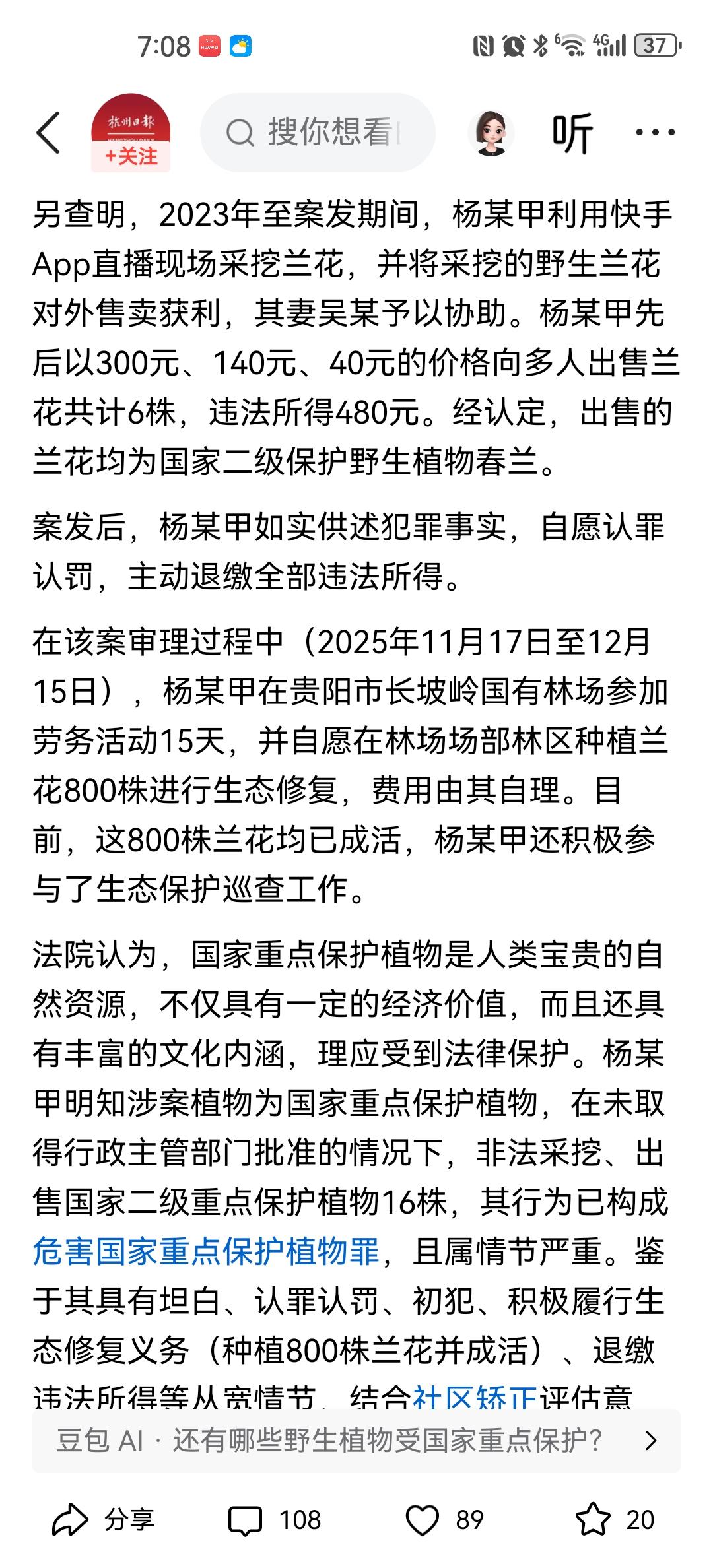 虽然杨某懂兰花,却不懂法啊,他哪里晓得这是国家二级保护植物!否则也不会开直播。
