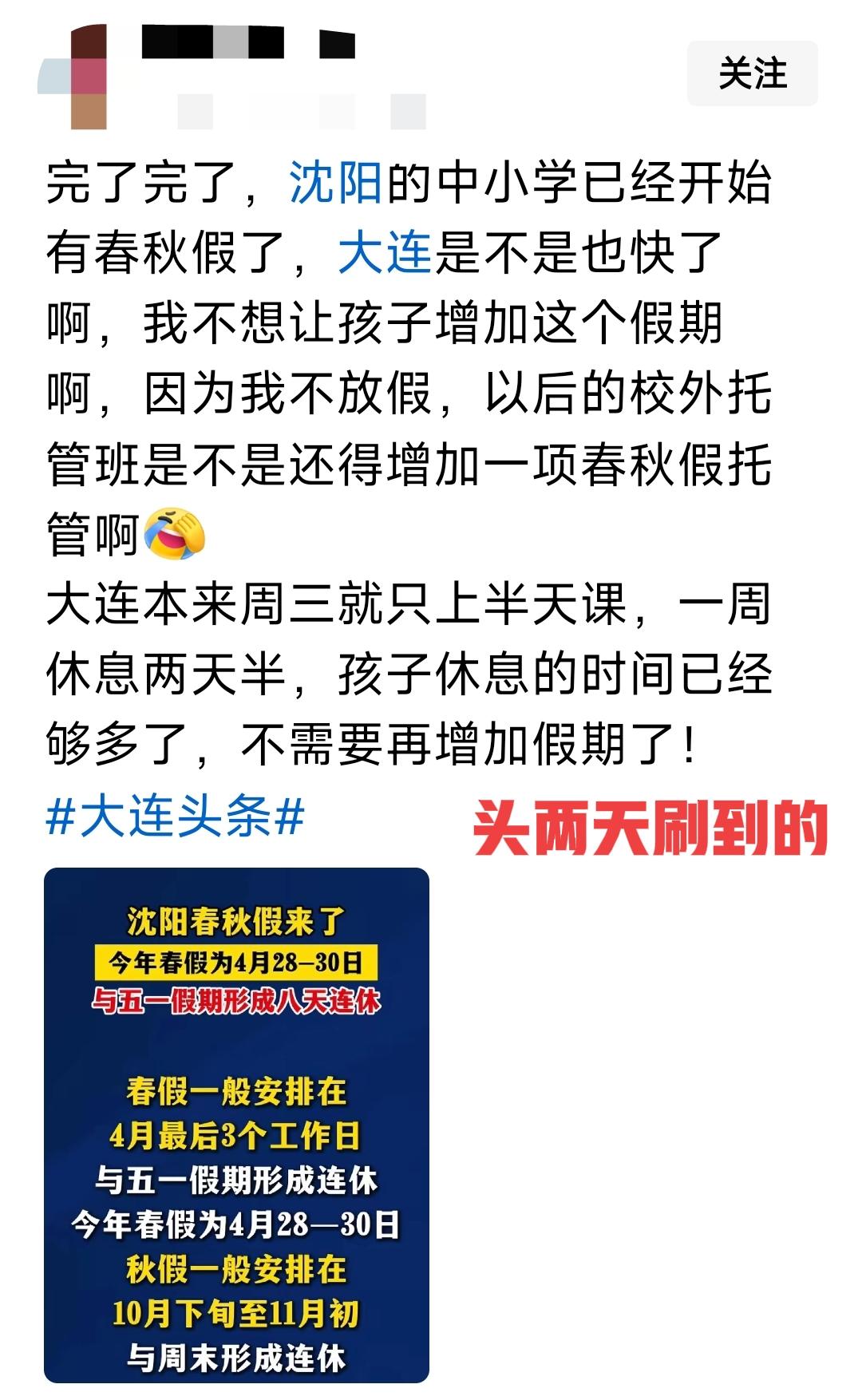 每个学期都是四个半月,寒暑假都是一个半月,每个学期约20个周三,也就是多了10天假期,一学年就是20天假,已经是独一份的幸福了[皱眉]别的没说跟上脚步,但凡涉及到双减、休息,必须跟[强]