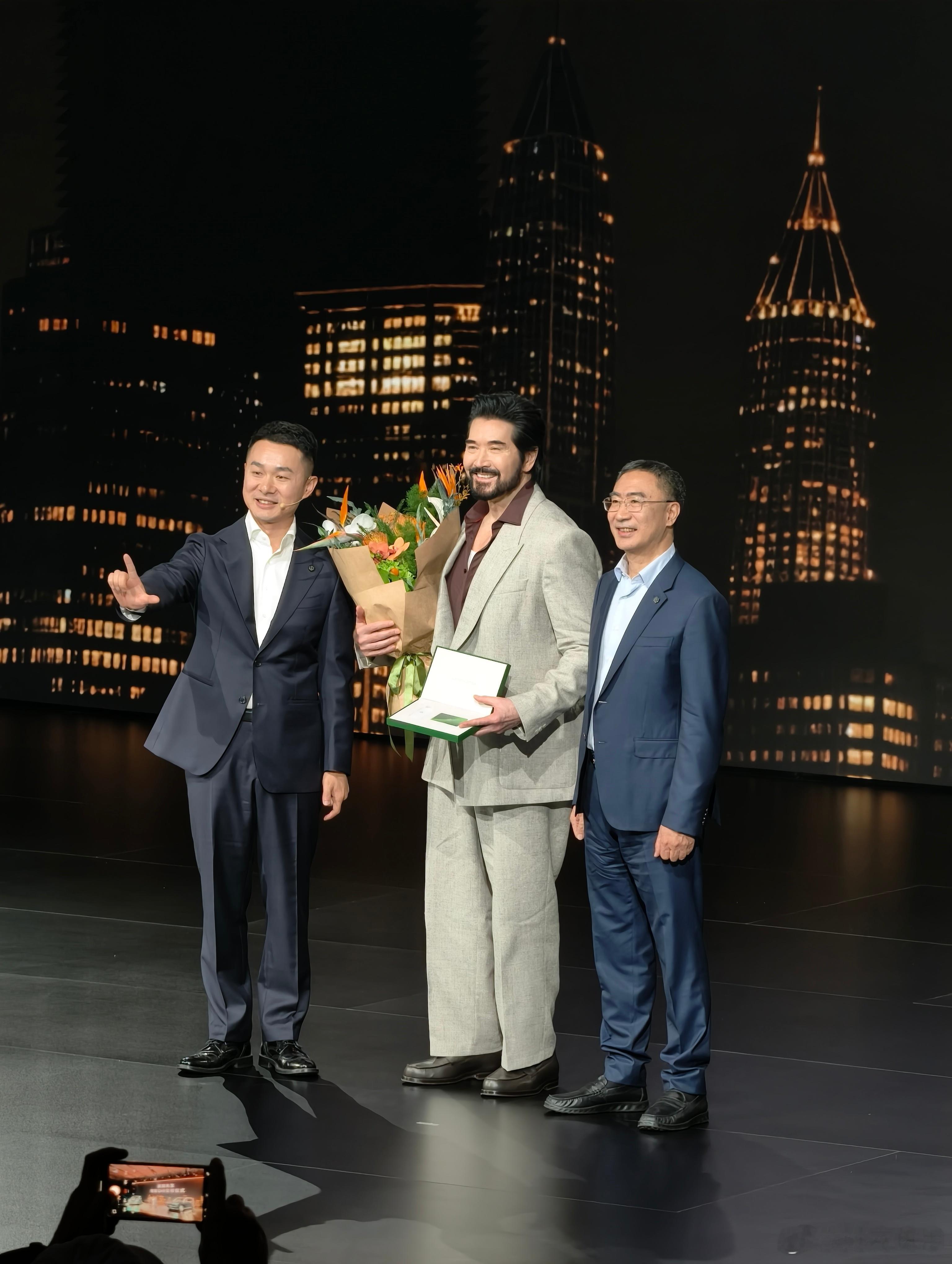 朱江明:以前我没有请过代言人,费翔老师是第一个。我是做理工科的,我觉得自己的车子做好就可以了,为什么要请代言人,所以我们一直是尽最的的努力,把产品做好,把技术做好,没有请过代言人。