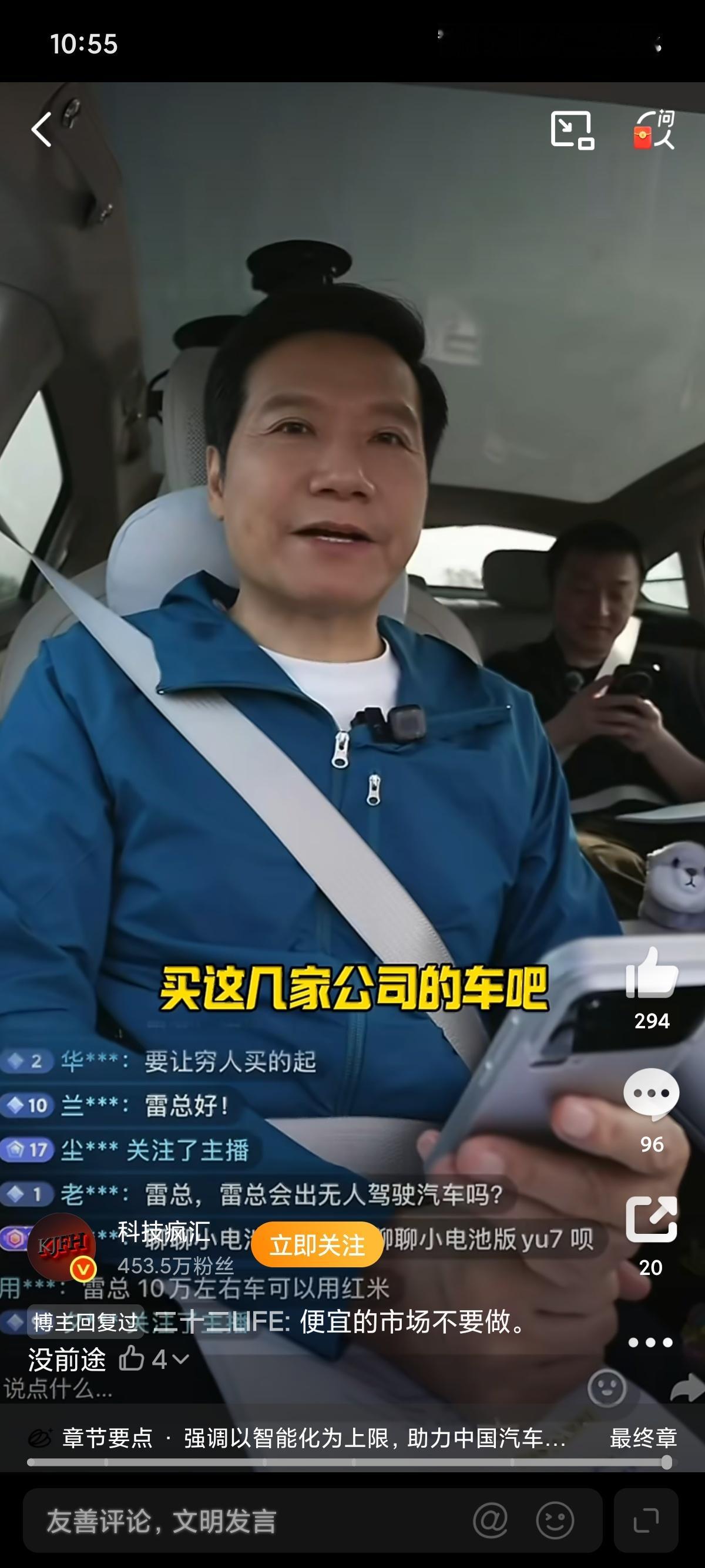 1、小米是想做成媲美保时捷的车企。2、如果智能化做好,压到十万以内比较难3、雷总还说,国产的几个友商,已经在这个区间做的很好了,推荐大家去买这几家,十万以内绕不开的五菱、比亚迪、吉利