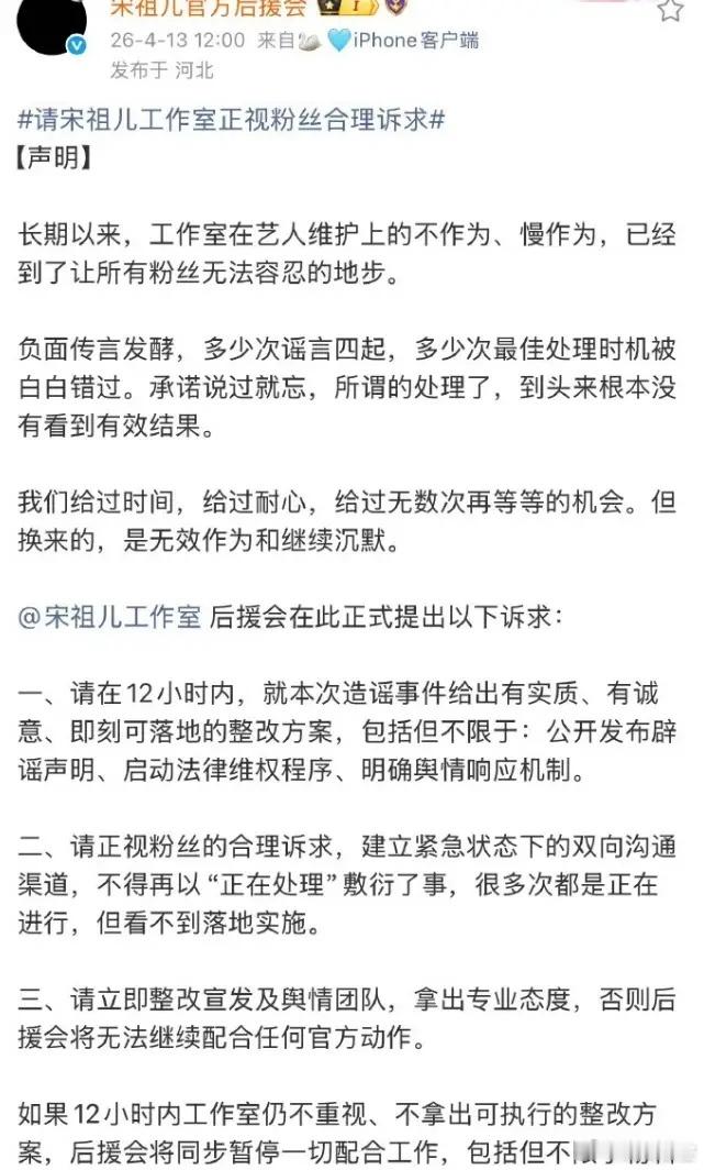 宋祖儿后援会回复头像!前几天宋祖儿被爆有小号,疑似和刘宇宁偷偷恋爱,粉丝对工作室的回应不满意,认为工作室不够维护宋祖儿,所以集体换头像,以停止运营威胁工作室再发声明维护宋祖儿,结果就是工作室表面上完全没搭理,这才两天时间,后援会以及粉丝都乖乖把头像换回来了,之前好几家以停止运营威胁,最终都没成功。