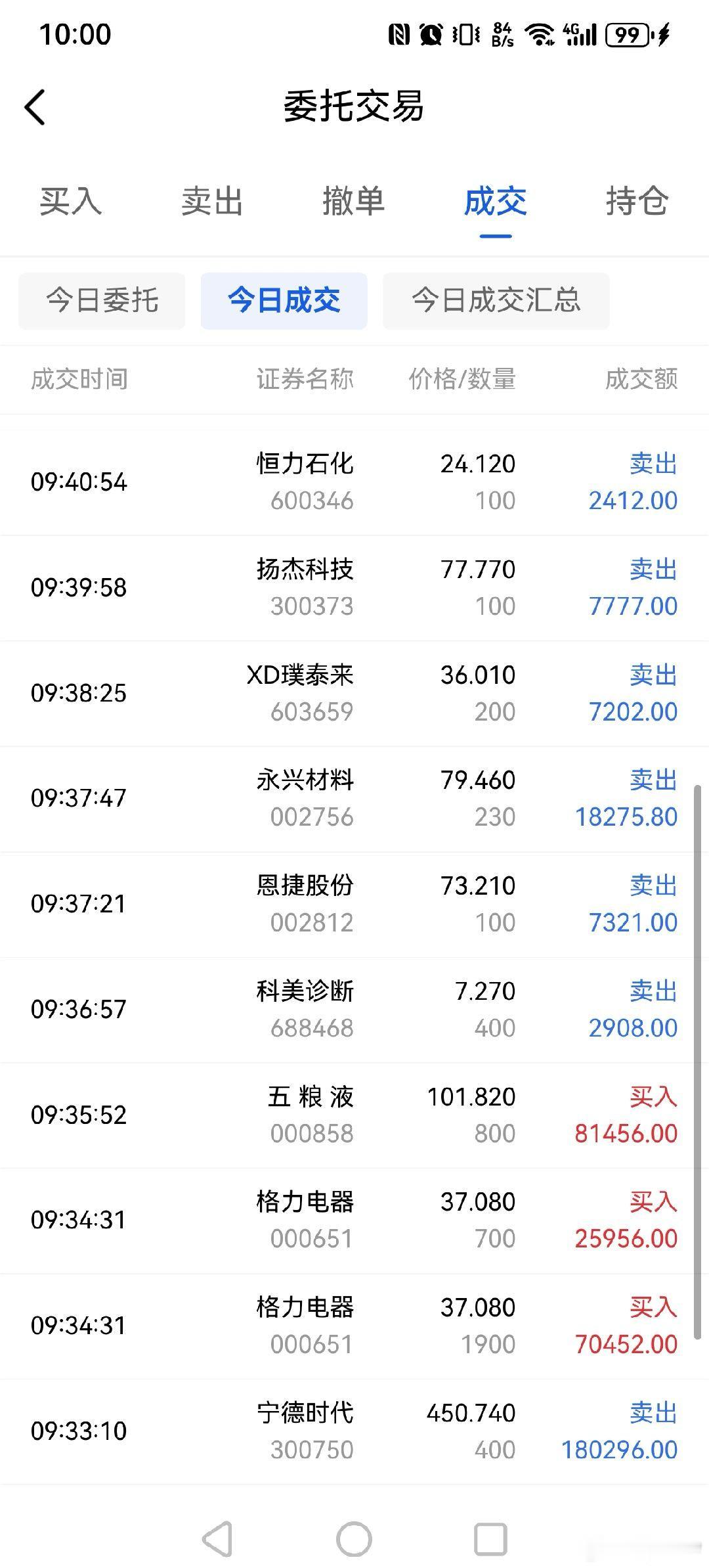 卖出宁德时代,恒力石化,清仓科美诊断,恩捷股份,永兴材料,璞泰来,杨杰科技,捷佳伟创,奥美医疗,华测检测,艾华集团,建业股份,汉钟精机,巴比食品,华翔股份,华瓷股份,华鲁恒升,浩洋股份,海容冷链,加仓五粮液,格力电器,冲冲冲!股票
