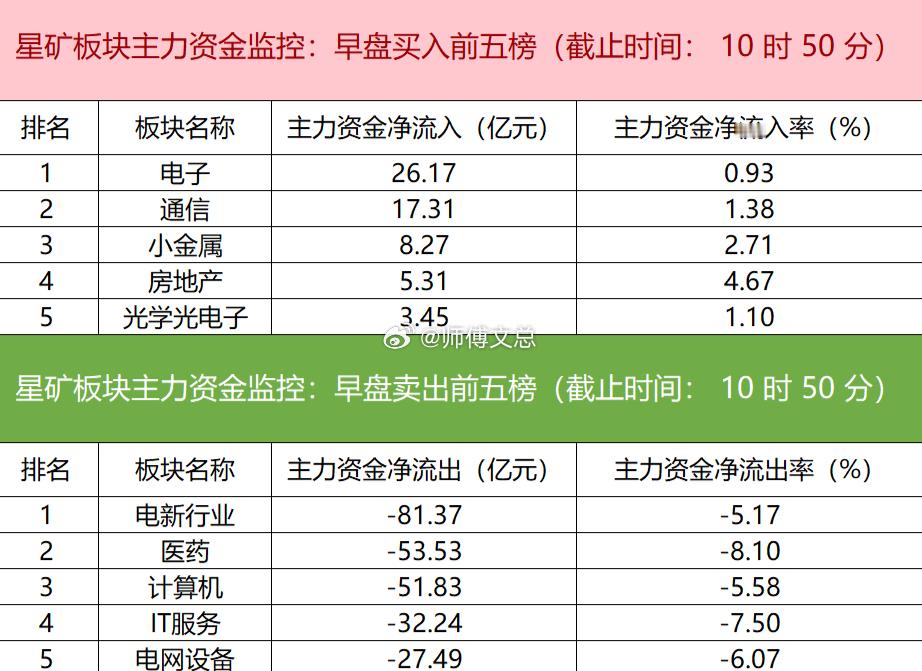 【主力资金监控:胜宏科技净买入超16亿】星矿数据显示,今日早盘主力资金净流入电子、通信、小金属等板块,净流出电新行业、医药、计算机等板块,其中电新行业净流出超81亿元。个股方面,胜宏科技大涨,主力资金净买入超16.59亿元位居首位,云南锗业、新易盛、天孚通信获主力资金净流入居前;药明康德遭净卖出超15亿元,佰维存储、宁德时代、贵州茅台资金净流出额居前。财经A股 今日看盘