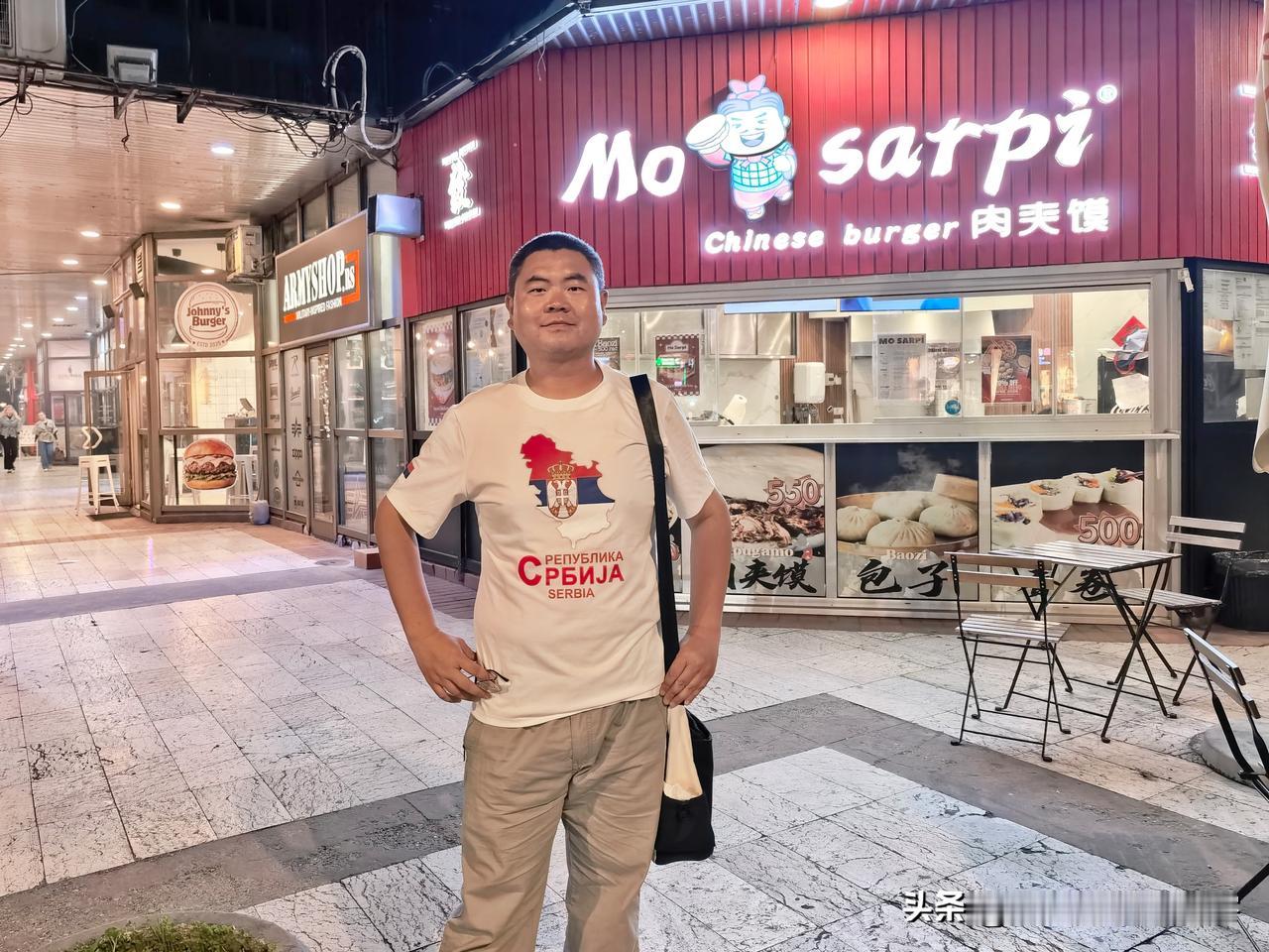 在贝尔格莱德市中心,紧邻共和国广场,有一家肉夹馍店。夜晚,转了一大圈儿,没找到任