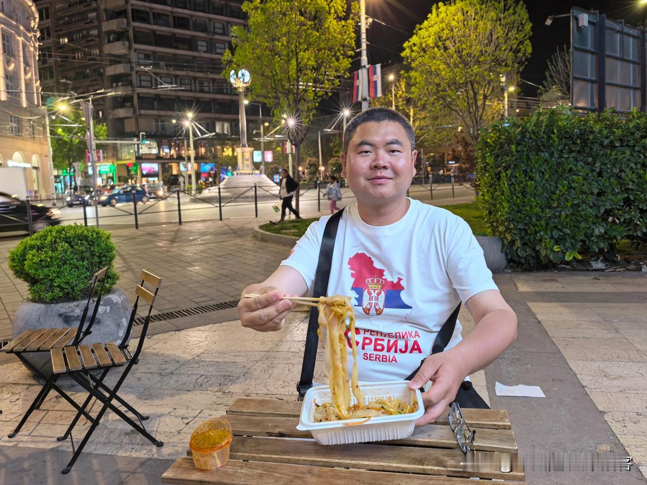 在贝尔格莱德市中心,紧邻共和国广场,有一家肉夹馍店。夜晚,转了一大圈儿,没找到任何像样的当地美食,只好花520第纳尔在这里吃一份凉皮。折合人民币35元~