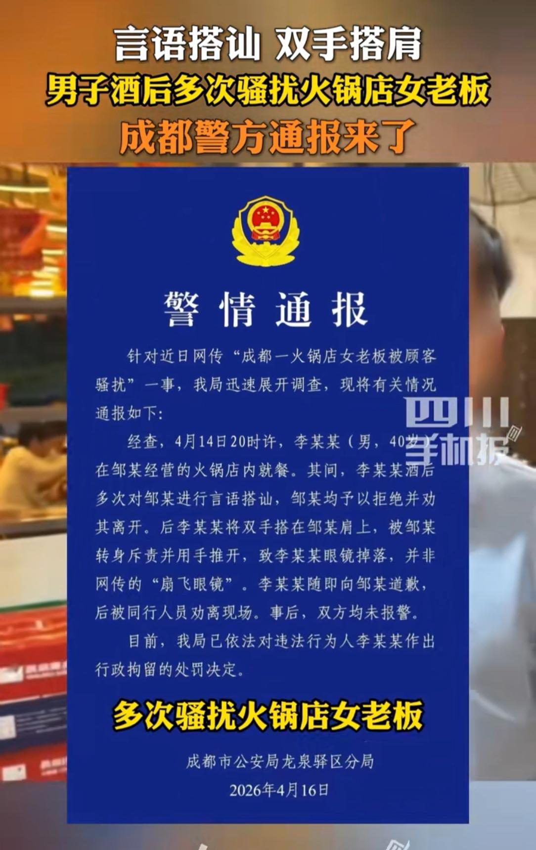 火锅店男子骚扰女老板后续!如今面临着2个窘境,估计现在很后悔自己醉后行为: