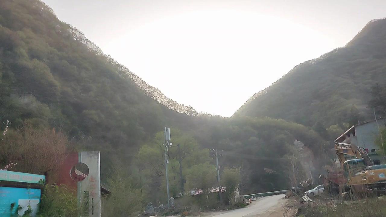 行驶在蓝田辋川李家河水库边的核桃沟,风景美得像闯入了画卷。夕阳西下时,晚霞铺满整个天空,晚归的鸟儿掠过树梢,峡谷下溪水潺潺流淌,村落里农舍升起袅袅炊烟,一切都显得那么宁静美好。