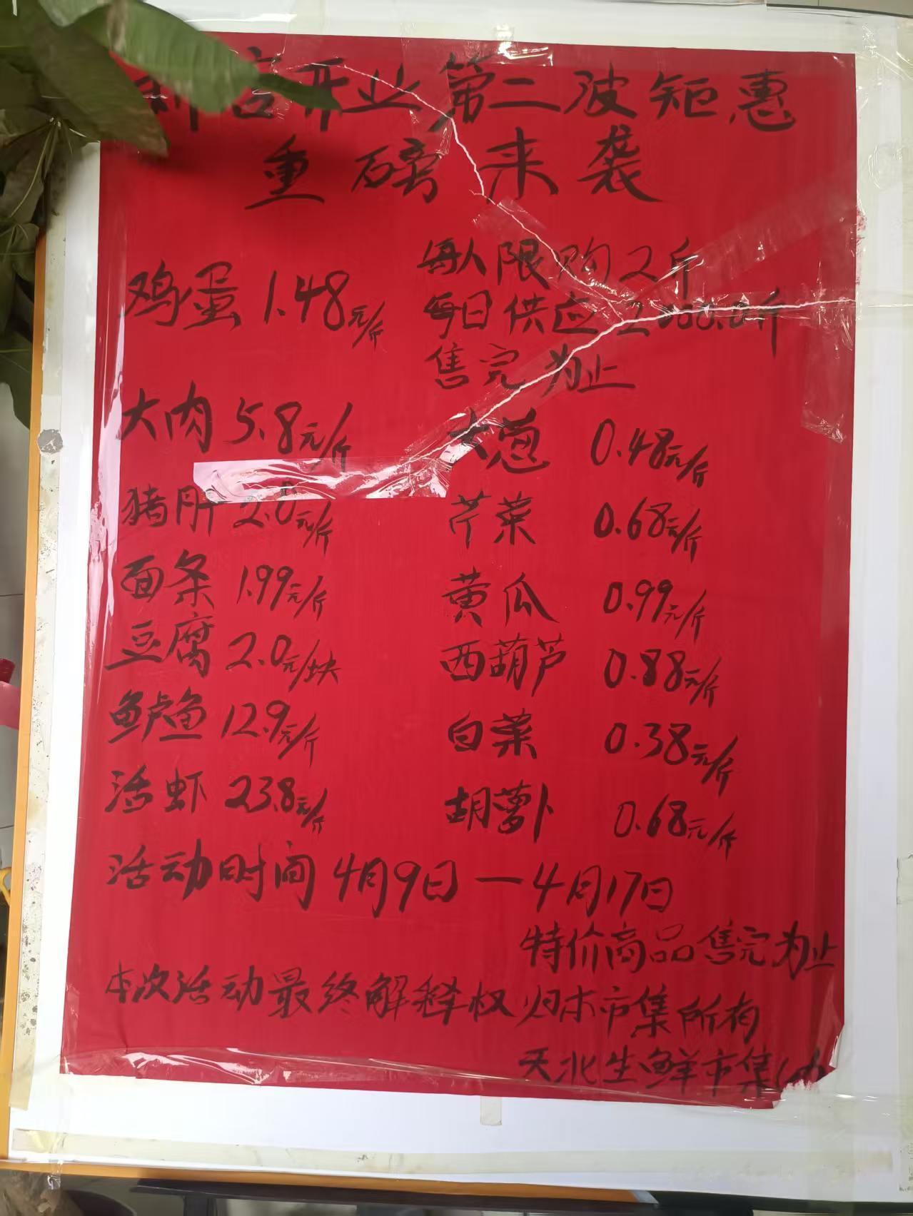 看看新开的一家早市的菜价够便宜吧 北沙滩大屯路上新开了一家天北生鲜市集,营业时间从早晨5:00到下午2:00,属于早市市场。刚开业应该是有优惠,这价钱可够便宜的,估计能吸引一大批爷爷奶奶这些有大把空闲时间的人去购物。周边的菜市场估计竞争压力骤增。