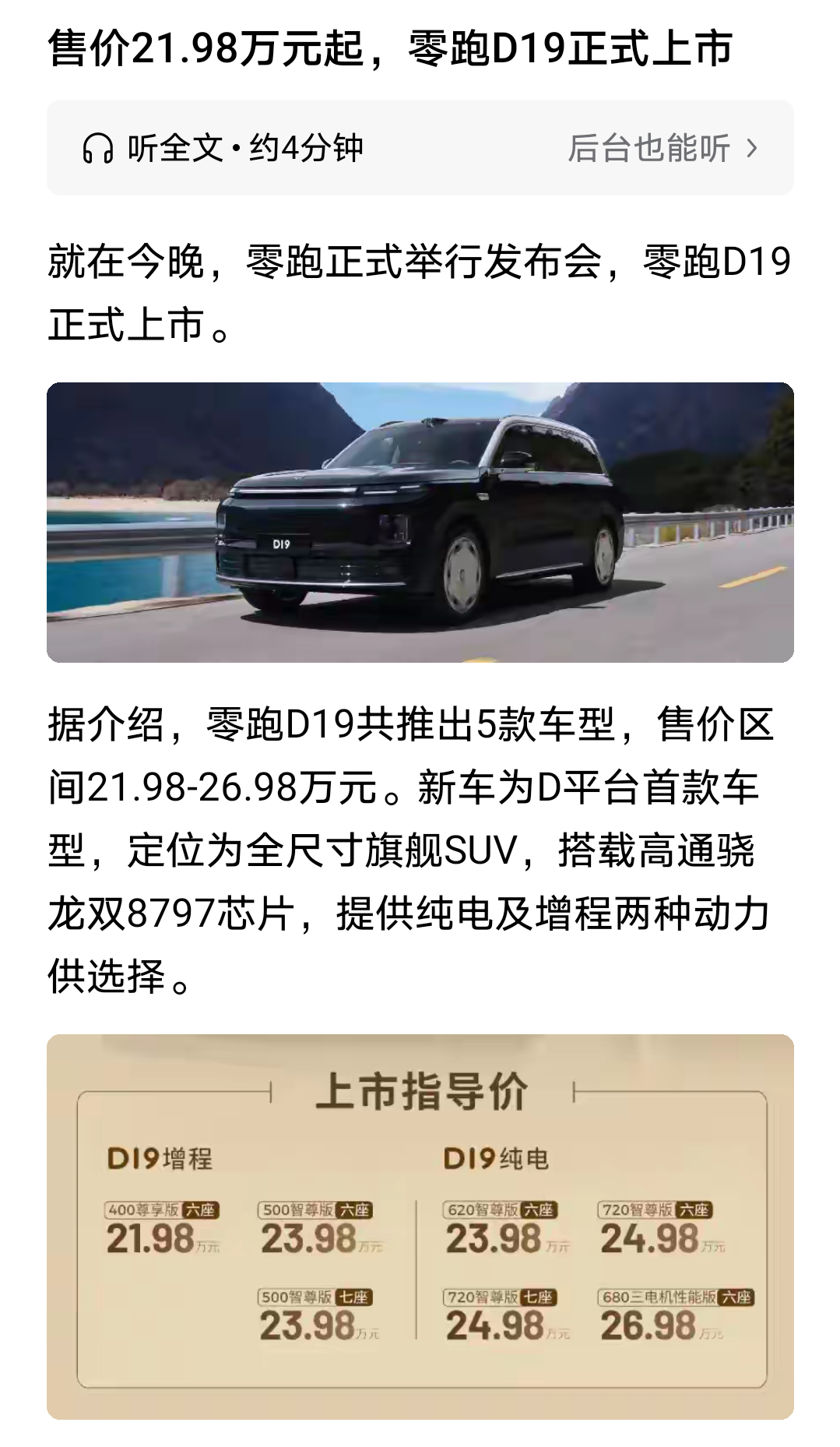 车圈最引人注目的还是零跑D19的价格,大型SUV21.98万起!