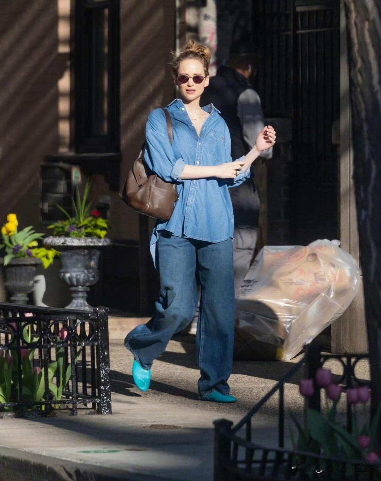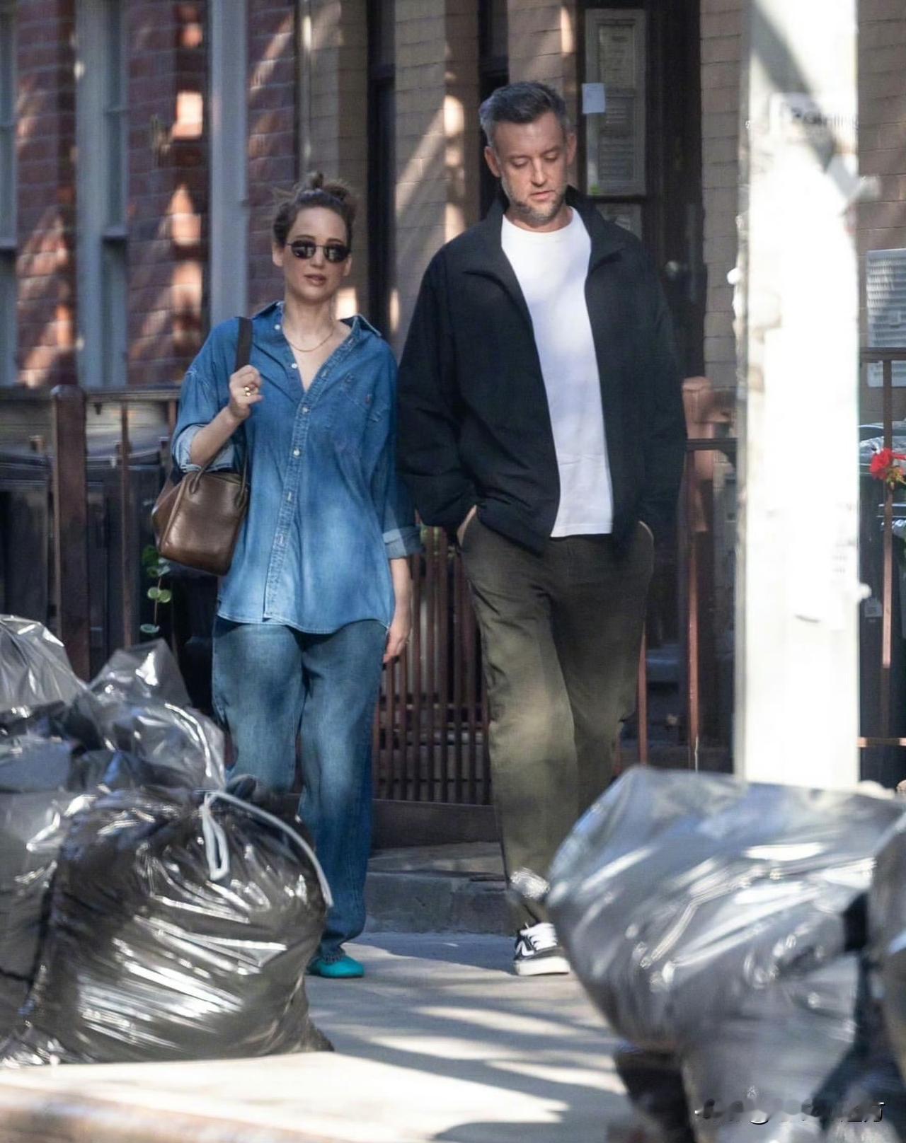 詹妮弗·劳伦斯近日被拍到与丈夫库克·马鲁尼在纽约街头悠闲出行,状态松弛又亮眼。她刚结束在欧洲长达两个月的密集拍摄,高强度工作与紧凑行程让她肉眼可见地瘦了一圈,足足掉了10斤。褪去戏服的她穿搭简约随性,身形更显轻盈纤细,素颜出镜依旧气质出众,夫妻二人并肩漫步,画面温馨惬意,尽显复工后的轻松与甜蜜。