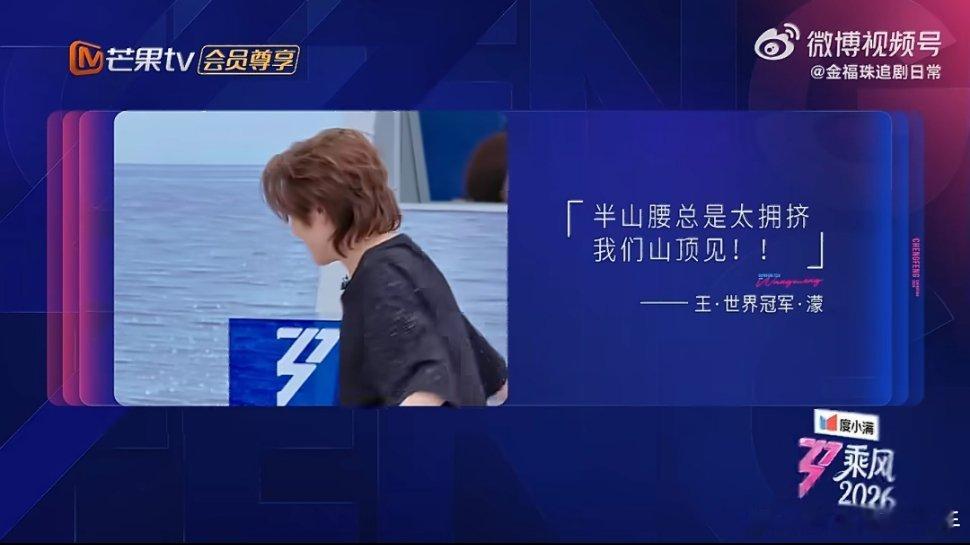 王濛半山腰太拥挤我们山顶见这就是冠军语录嘛,被问站在前三孤单吗,王濛表示要成为王者就要承受住那份孤单。姐经常站在这么高的位置,完全洒洒水啦~乘风二公真人秀乘风2026