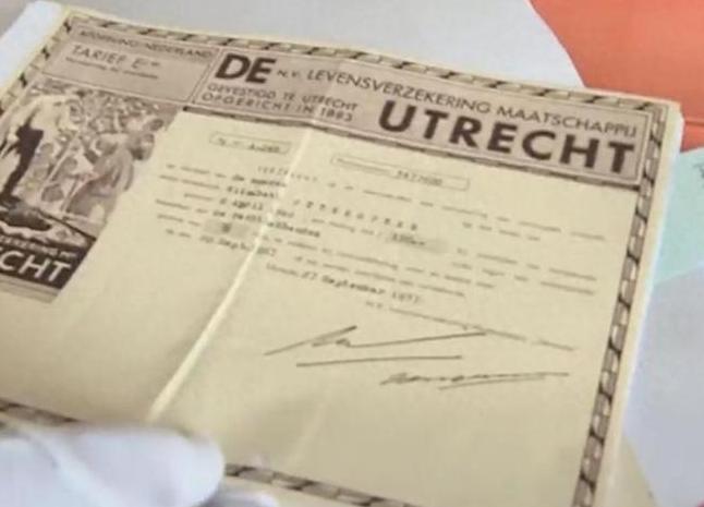 这是一张保单,投保人为他们的父亲,而受益人,是一位荷兰女子。