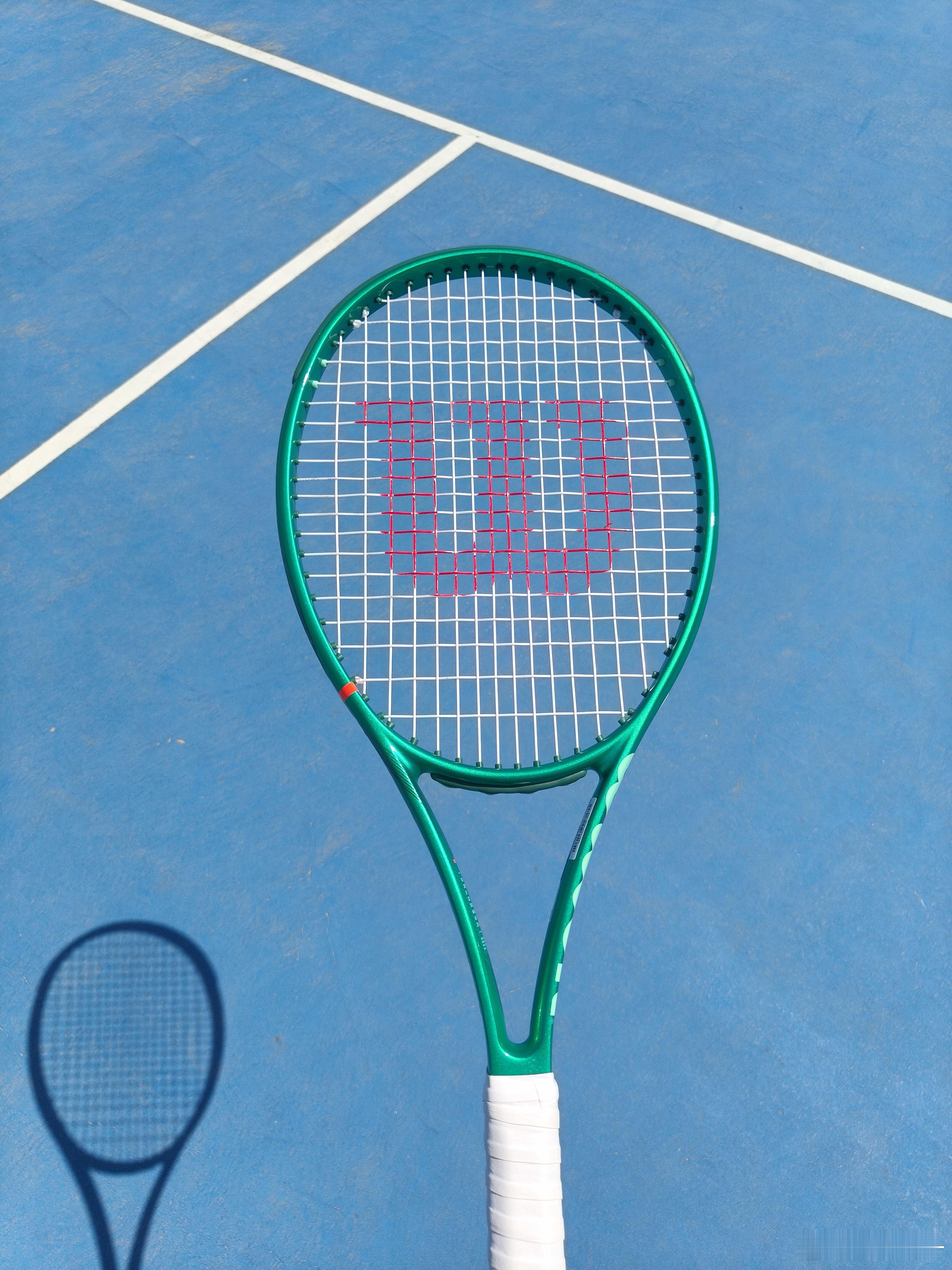 先说颜值,碧玺绿在太阳底下真的会发光,那种晶莹剔透的感觉。拍喉和护线管上那些线条纹路,像挥拍留下的痕迹,再加一点红色点缀,很好看。