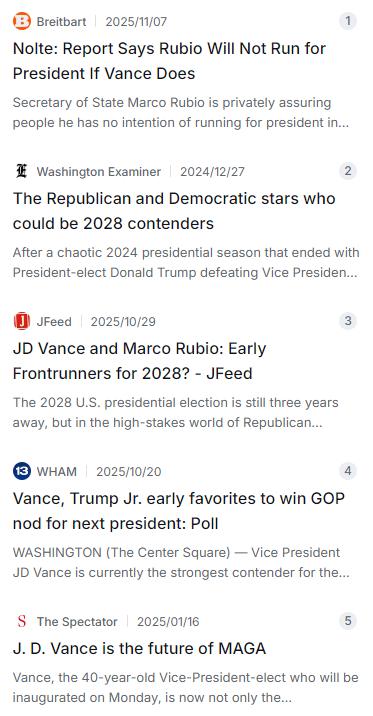 万斯比特朗普年轻,比特朗普有策略,比特朗普会搞资源,比特朗普更能整合党内各派势力。现在特朗普已经公开表态,说万斯就是他的接班人,鲁比奥那边的消息也说只要万斯想选,鲁比奥就不掺和了。
