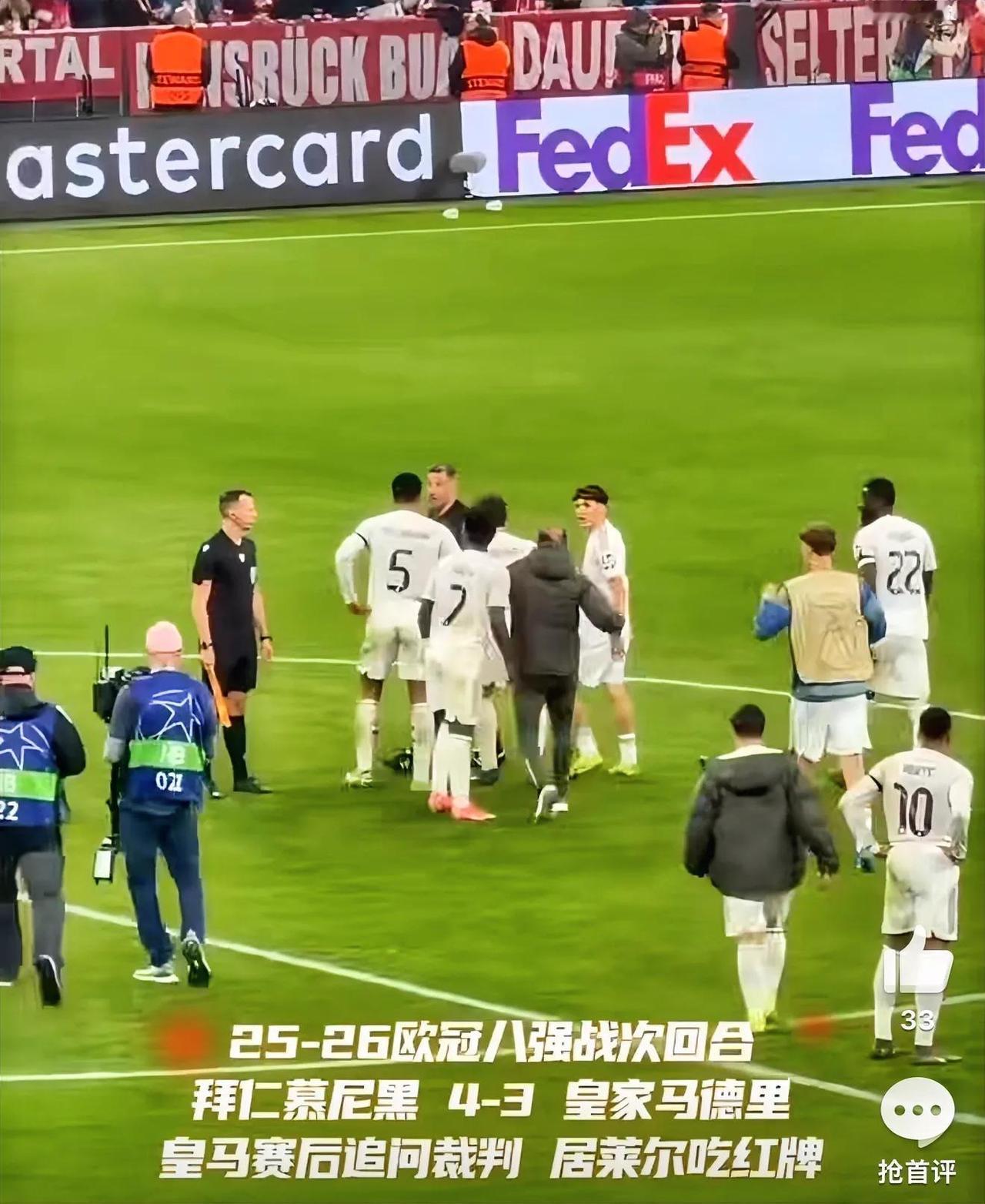 皇马强烈反应,阿韦洛亚认为,“裁判毁掉比赛,这种动作不该罚下”。球员赛后围堵裁判,居莱尔骂裁判染红。官方台,“红牌比窦娥还冤”。全队口径,出局全是裁判黑哨。
