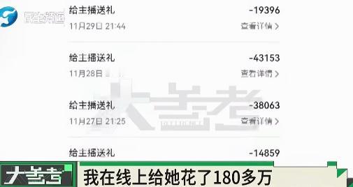 女主播直播时经常和他互动,说些贴心话,他听得心里暖和,打赏起来更是毫不手软。一年时间里,他在直播间的打赏累计达到180万元,其中有一次直播PK,他为了帮女主播撑场面,直接一次性刷了30万的虚拟礼物,成为直播间里的焦点。