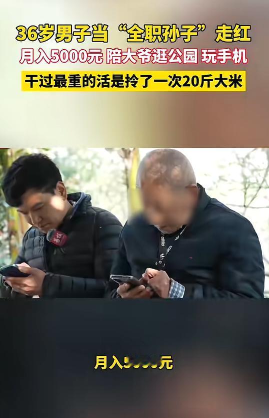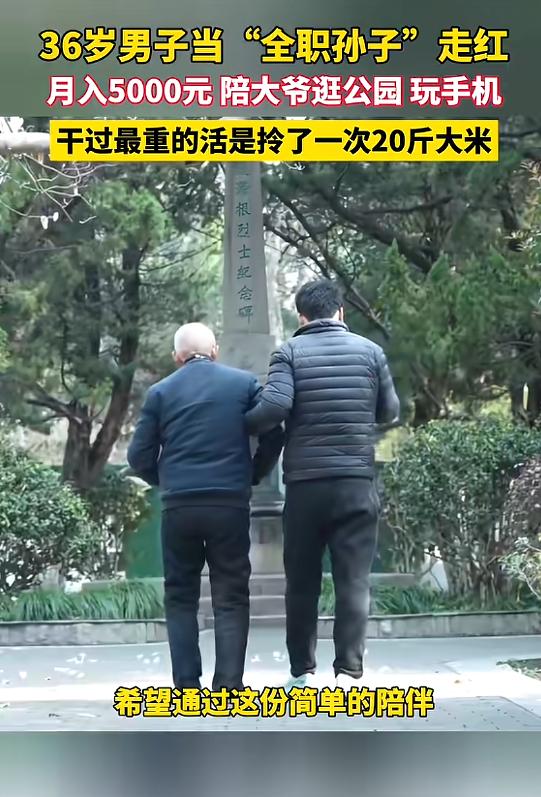 (信息来源:杭州网荔枝新闻《36岁小伙当“全职孙子”走红,每天陪大爷逛公园、玩手机,月入5000元。》)