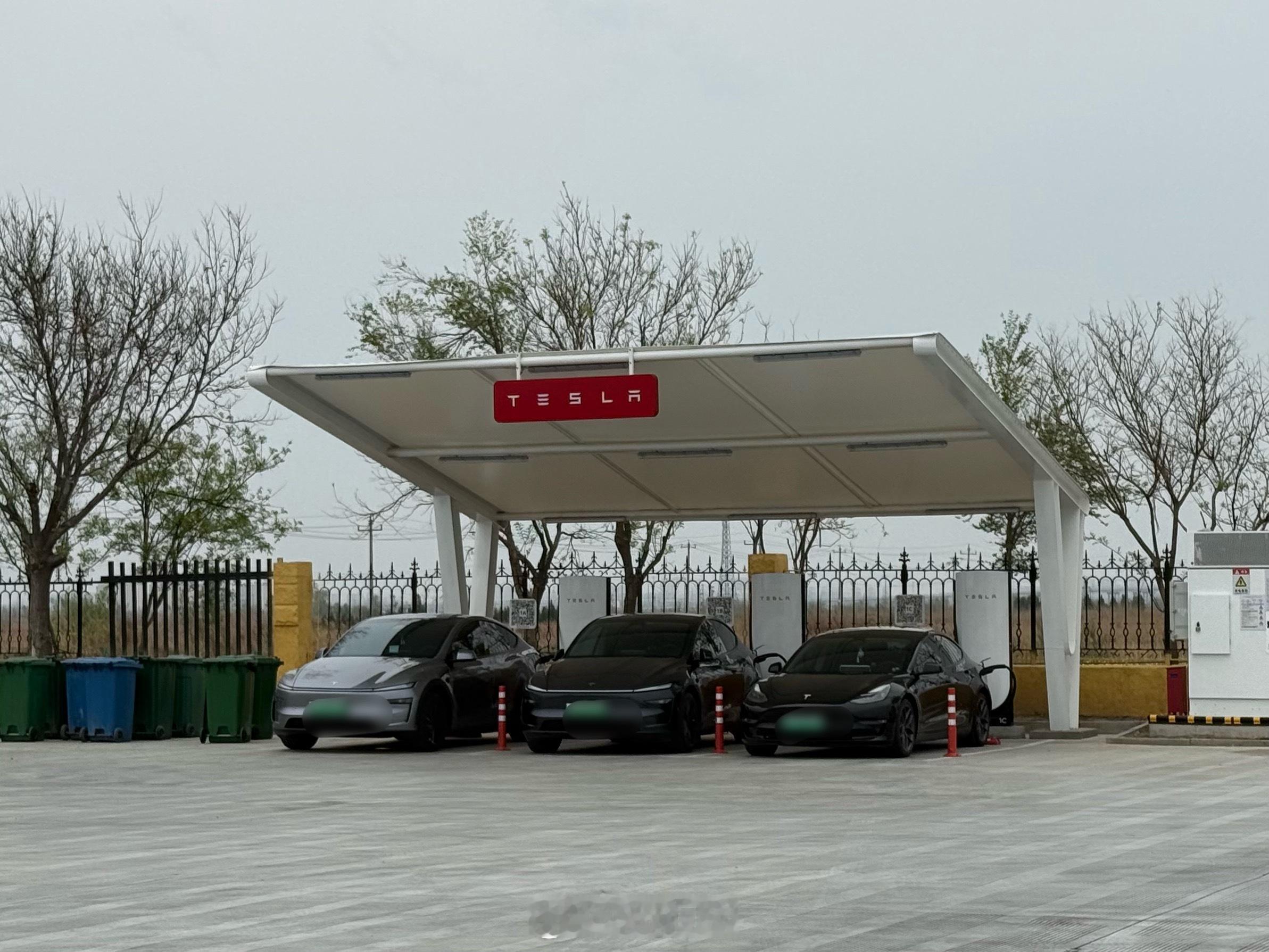 特斯拉 也开始在高速建桩了吃口东西回来停满了