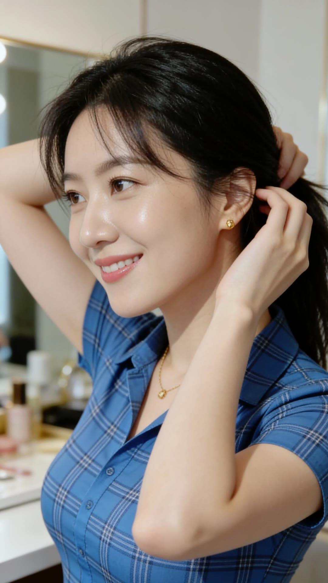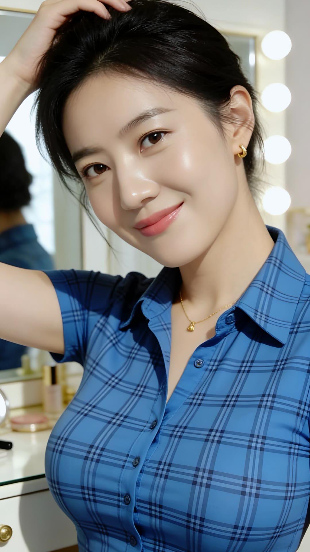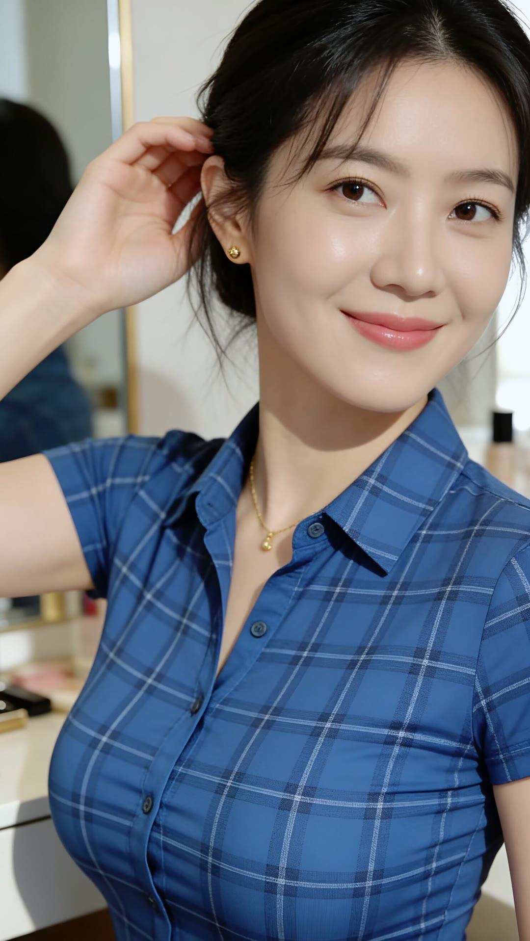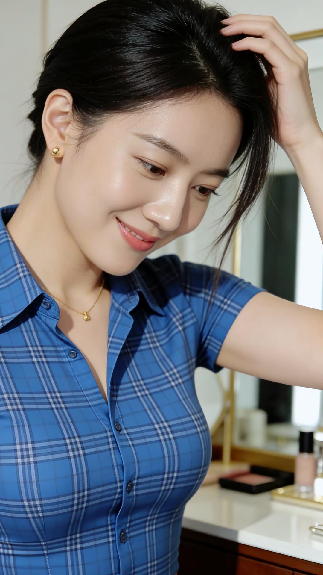 镜中人影,笑语嫣然。
