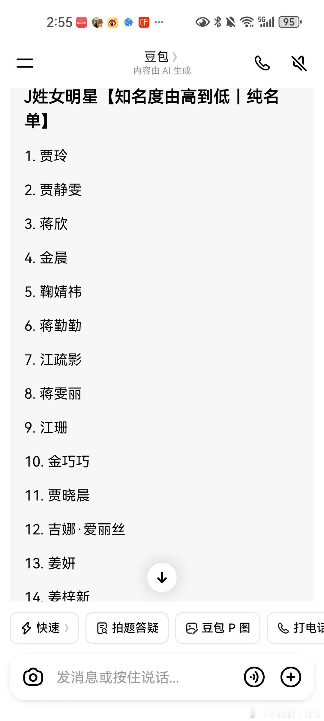 曝索要3亿的女星以小清新出道豆包说J姓女明星就这些了,能对得上的没几个。