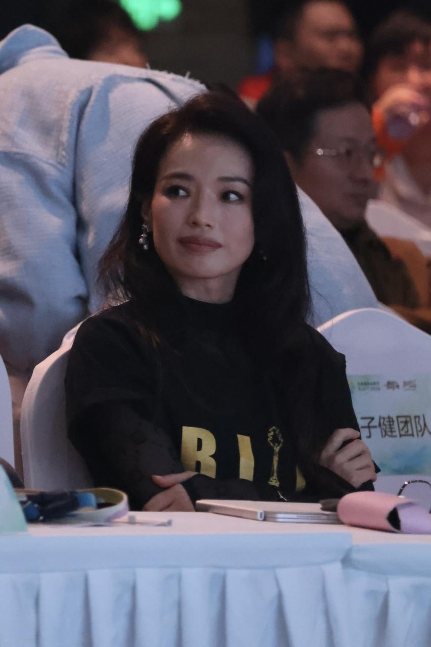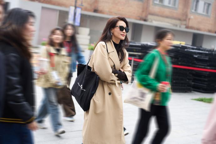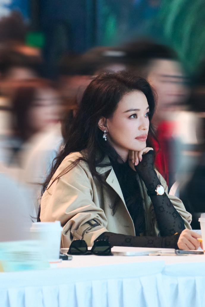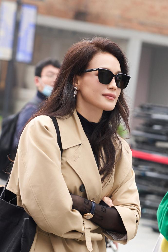 舒淇里面穿黑色打底衫,外面套着米色的风衣,看起来有种风度翩翩的感觉,确实是太美了。