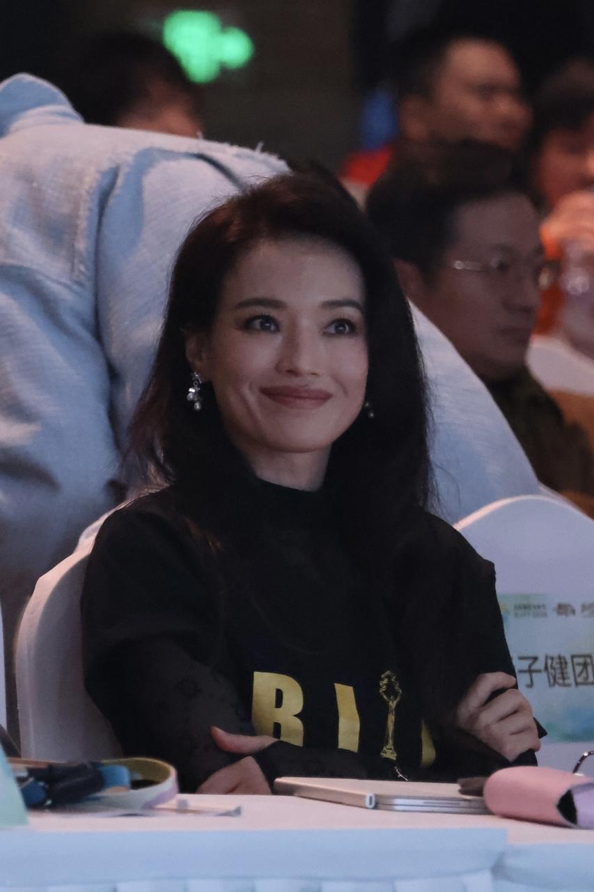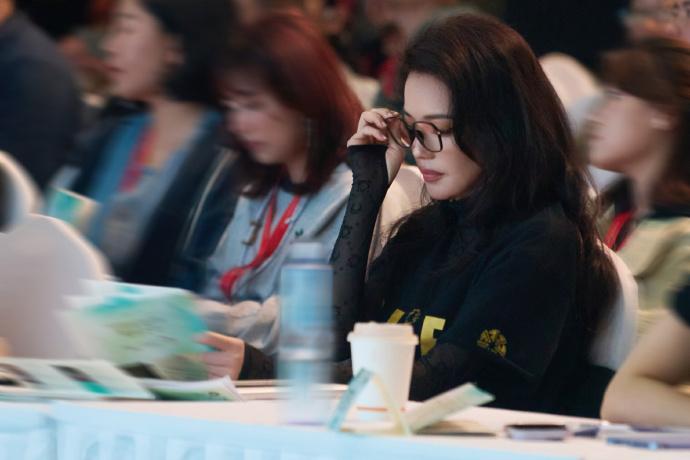 她背着黑色的布包,同时戴着银色的耳坠,变得越来越时尚了,不得不说舒淇也是个不老女神啊。