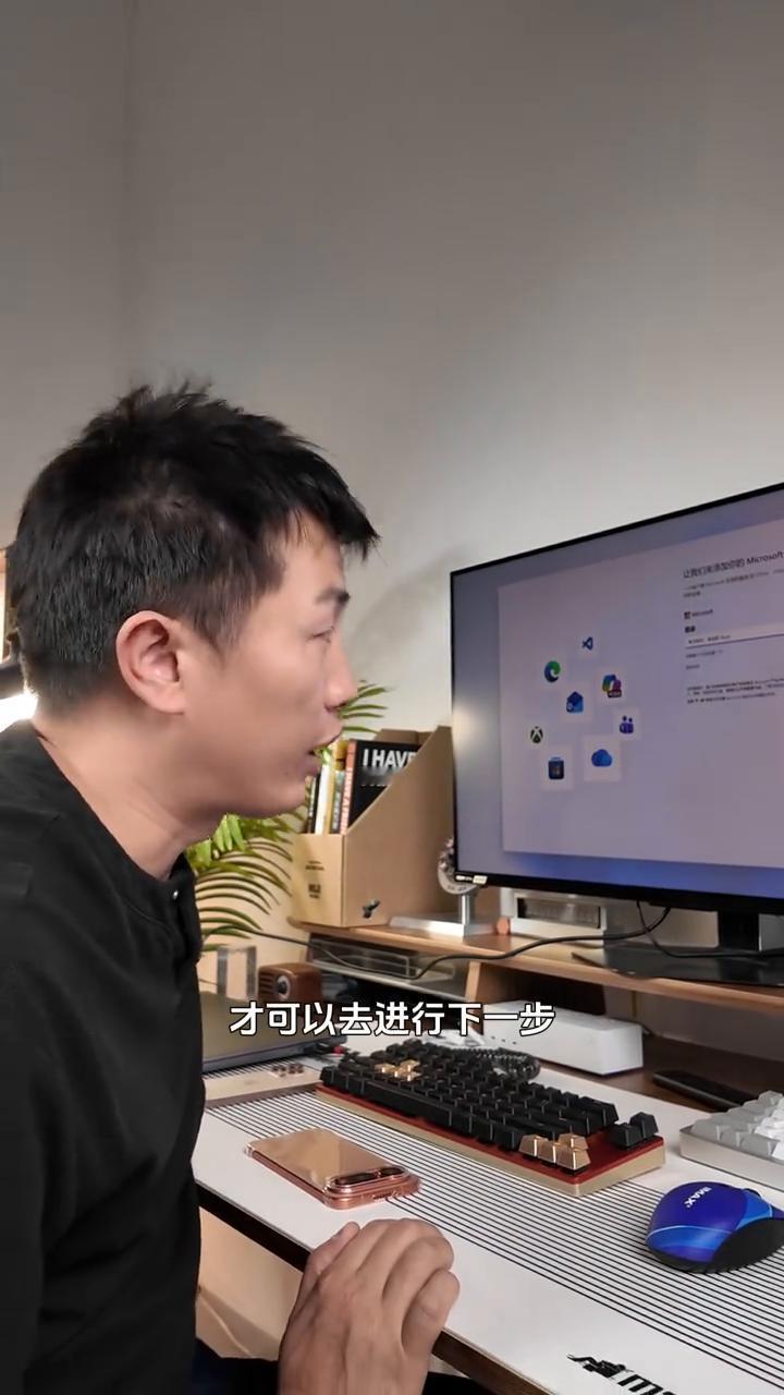 弹出一个这样的界面,然后通过密钥登录。刚才是怎么回事?就通过了,它扫了你的人脸。苹果账号跟微软账号有什么关系?或许是我之前登录别的电脑的时候,可能我拿iPhone去做过什么验证,我不记得了。所以就是你用安卓手机是没有办法扫码登录设置Windows的新电脑。