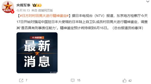 4月17日,东京地方检察厅做出了一个出乎意料的决定:对3月24日持刀翻墙闯入中国驻日大使馆的自卫队军官村田晃大,启动精神鉴定,预计将持续到6月16日。