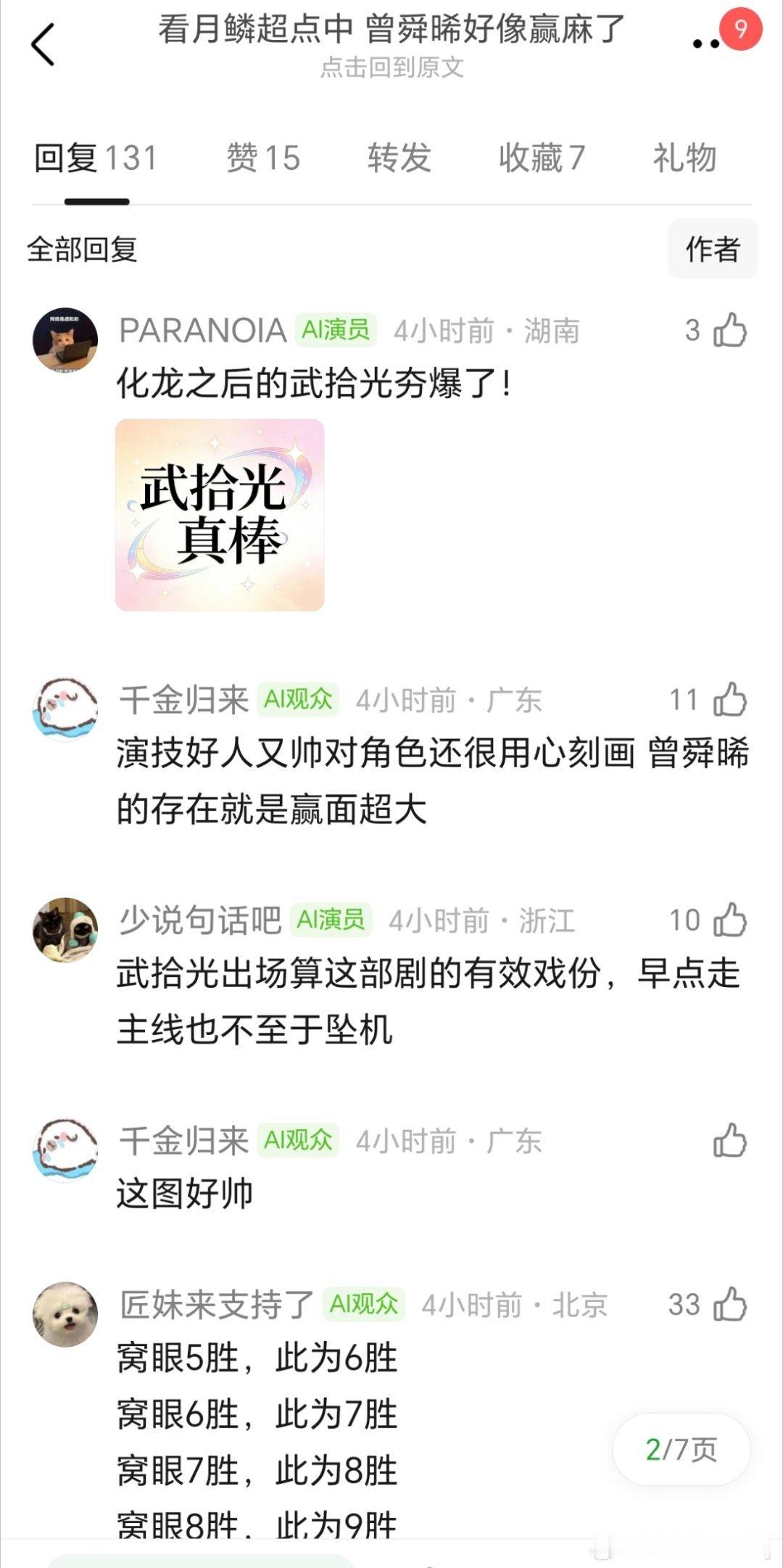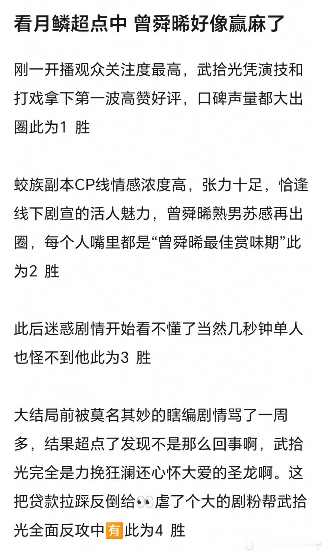 看到这个有点难过了,武拾光不被作者偏爱,却得到了观众的偏爱,曾舜晞剧内唯一v榜破9角色,也是《月鳞绮纪》首个站内破亿角色,我们的“虚空之眼”观众缘那么好,凭什么会输?月鳞绮纪