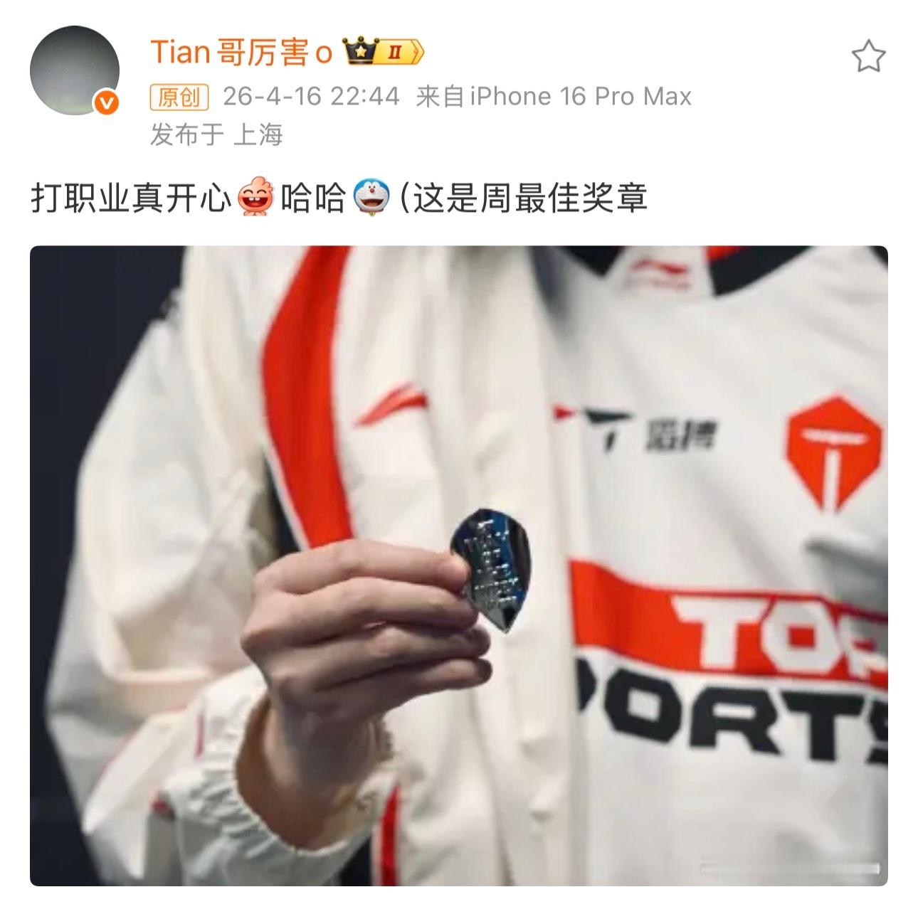 Tian昨天2:0把BLG干了之后直接发了个“打职业真开心,哈哈”,之前被带中野节奏喷成那样,现在笑嘻了是吧。Knight还给他点赞了,这俩前队友搁这演连续剧呢?