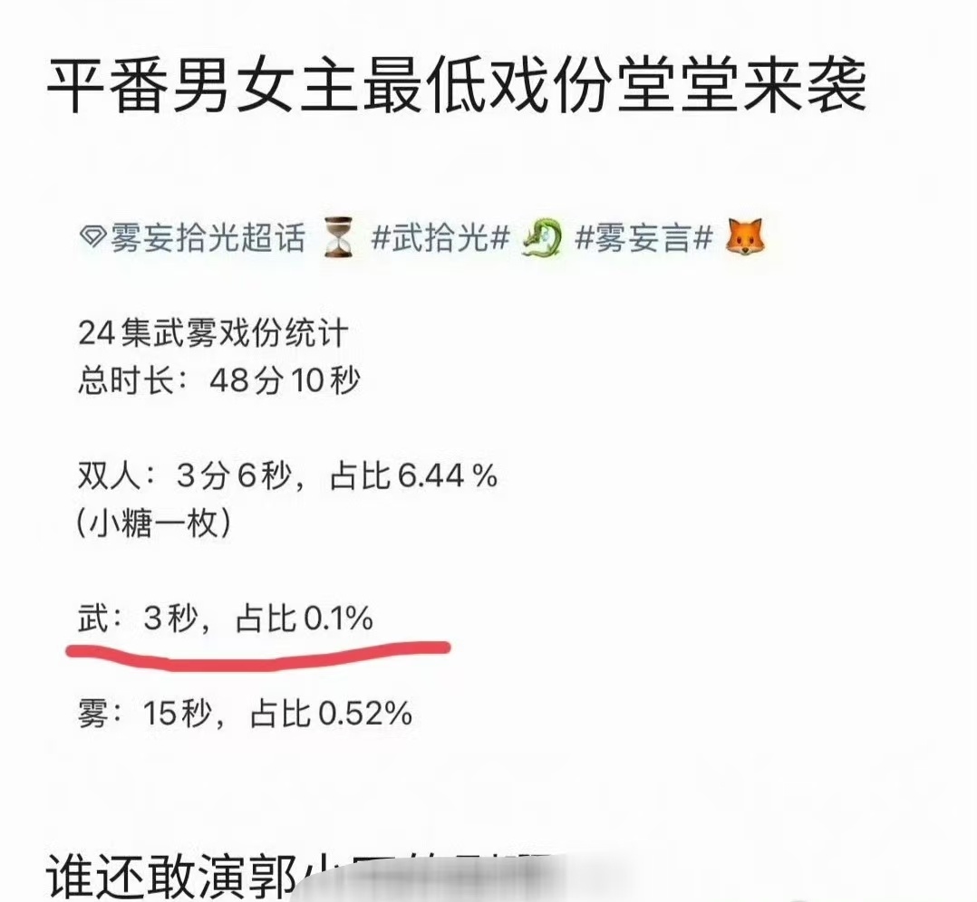 曾舜晞月鳞绮纪戏份统计曾舜晞月鳞绮纪出镜时长谁懂啊!曾舜晞《月鳞绮纪》戏份也太惨了!集均出镜才4分钟左右,有的集数连1分钟都没有,一番男主活成客串。辛苦拍五个月的打戏、冷水戏,成片全是碎镜头、背影,工具人都没这么惨,剧方这操作真的太让人失望了!