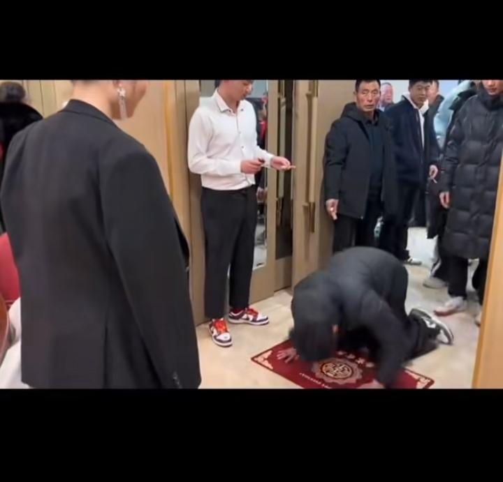 道喜,这是我们那的规矩。婚宴结束后,娘家人回家之前要去给出嫁的姑娘“道喜”,长辈作揖,弟弟和侄子磕头,道喜结束后娘家人就都回家了,这一跪是生离。下次再来这么多人给姑娘下跪的时候叫做死别,也就是若干年后给老姑奶奶送殡的那天了!!!