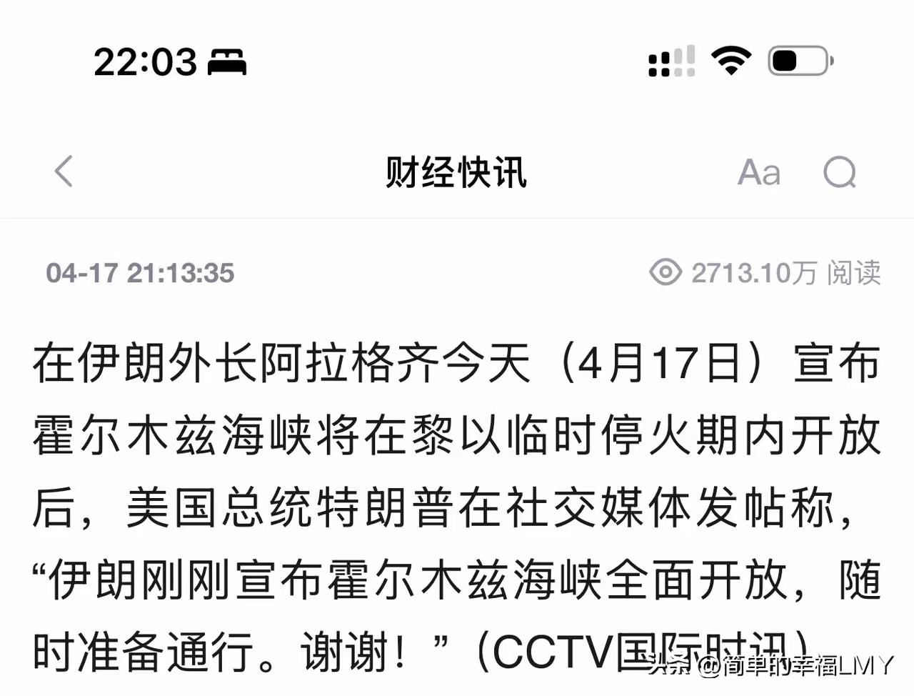 这场从霍尔木兹海峡引发,席卷全球的地缘风暴,终究以和平方式走向终局。油价暴跌、通胀缓解、市场回暖,对全世界而言,都是期盼已久的结果。未来随着美伊永久停战协议落地,中东地区将重回稳定,全球能源市场、金融市场也将彻底回归理性,迎来久违的平静与繁荣。