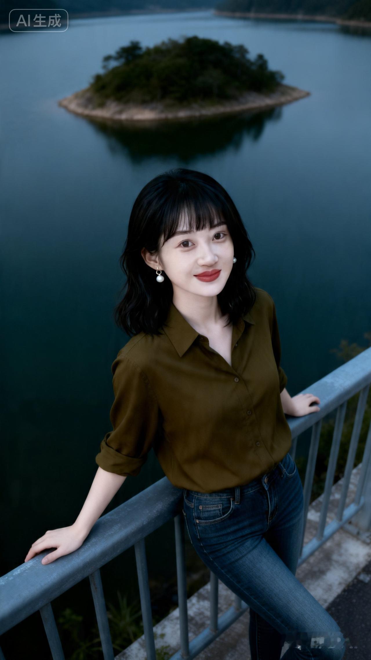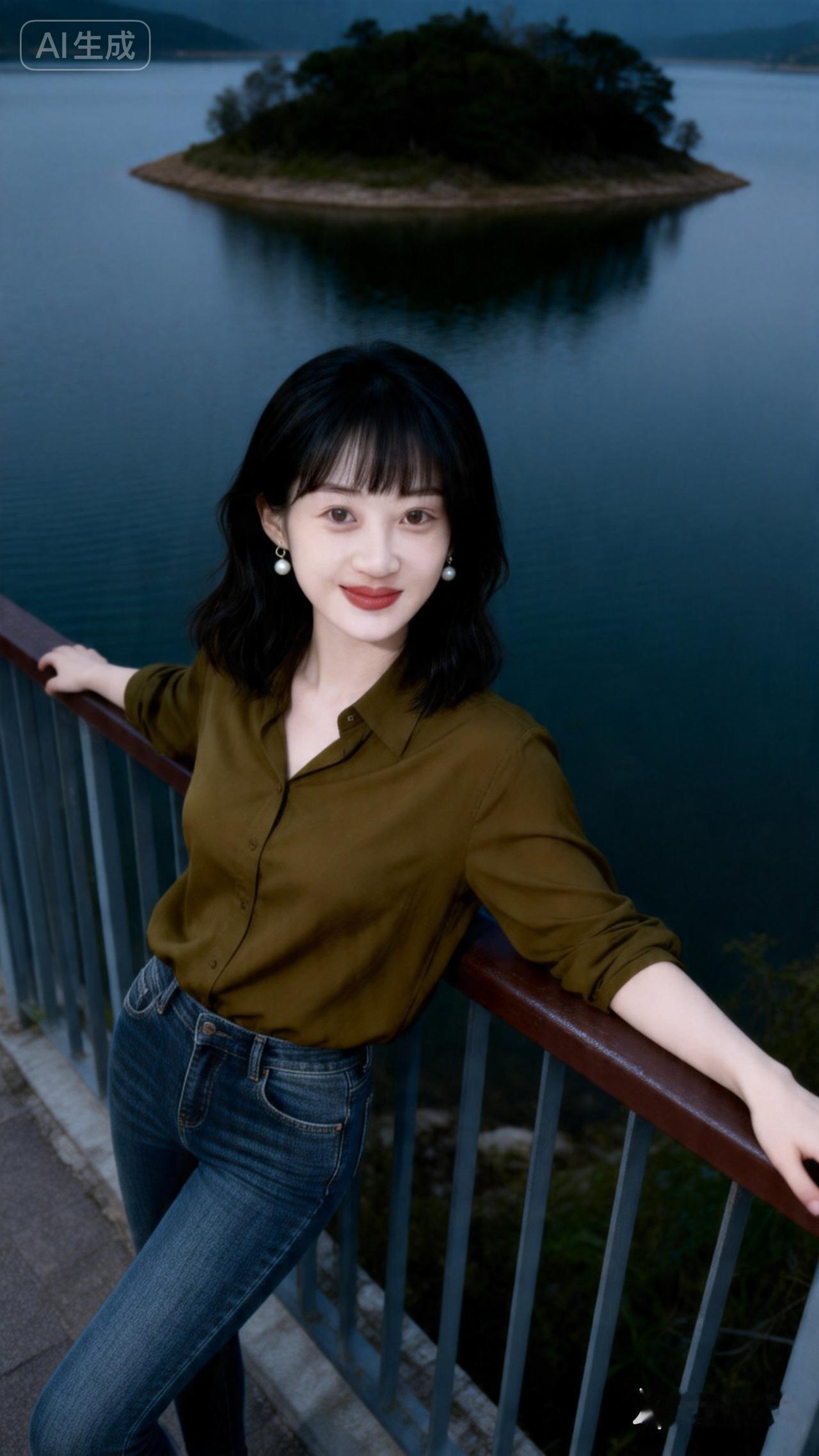 湖畔少女,悠然自得,绿意盎然,尽享自然之美。