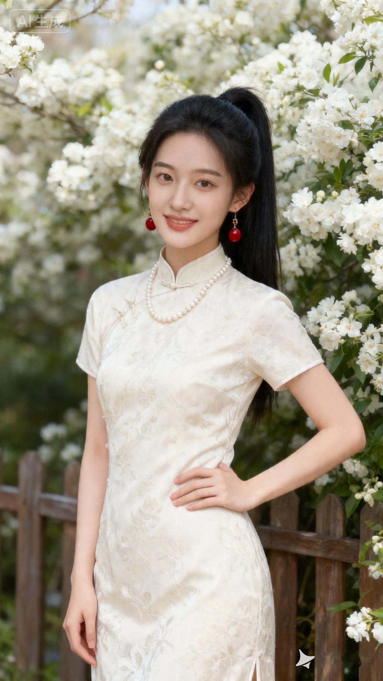 这位美女穿着华丽的旗袍,真漂亮!