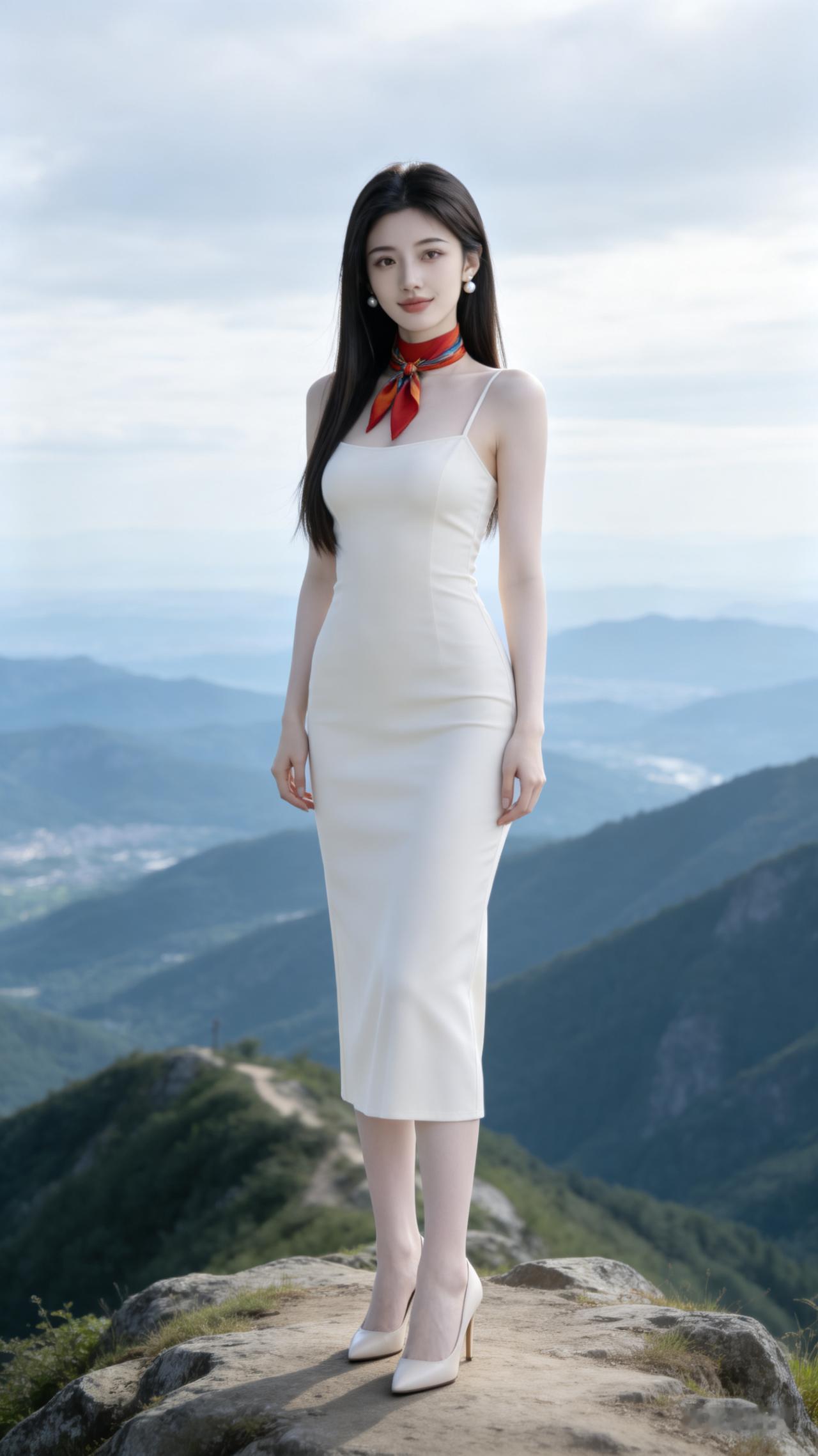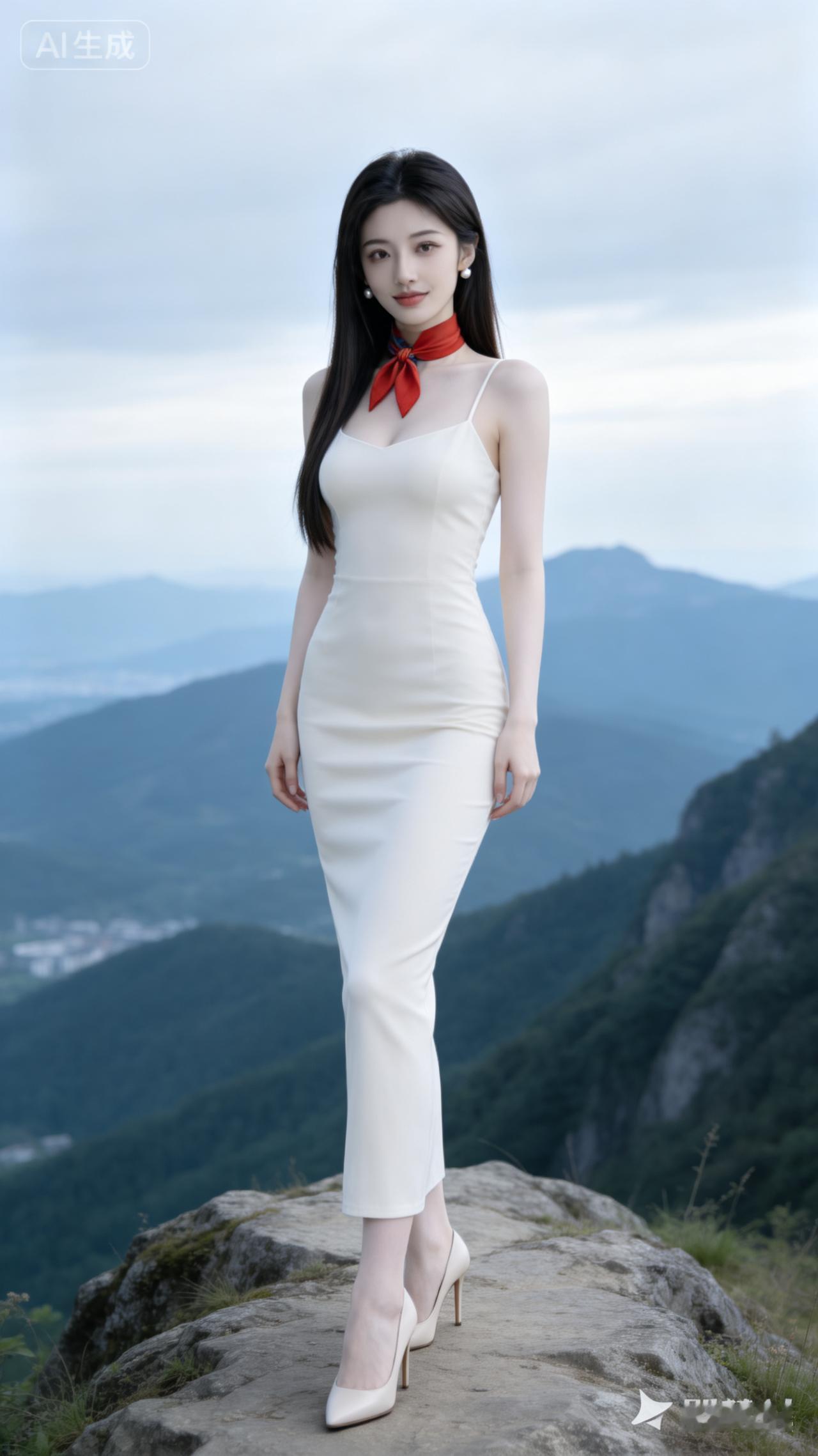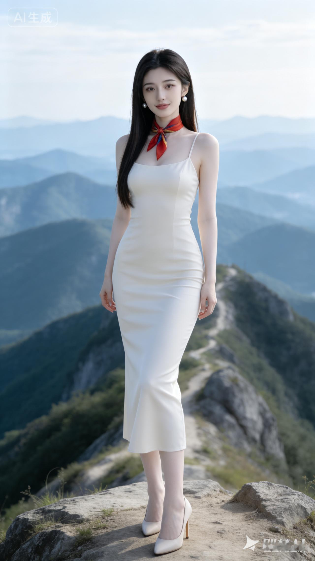 仙气飘飘的白色长裙,山间小径上的优雅女神
