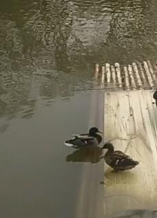 公园里两个鸳鸯在吵吵。