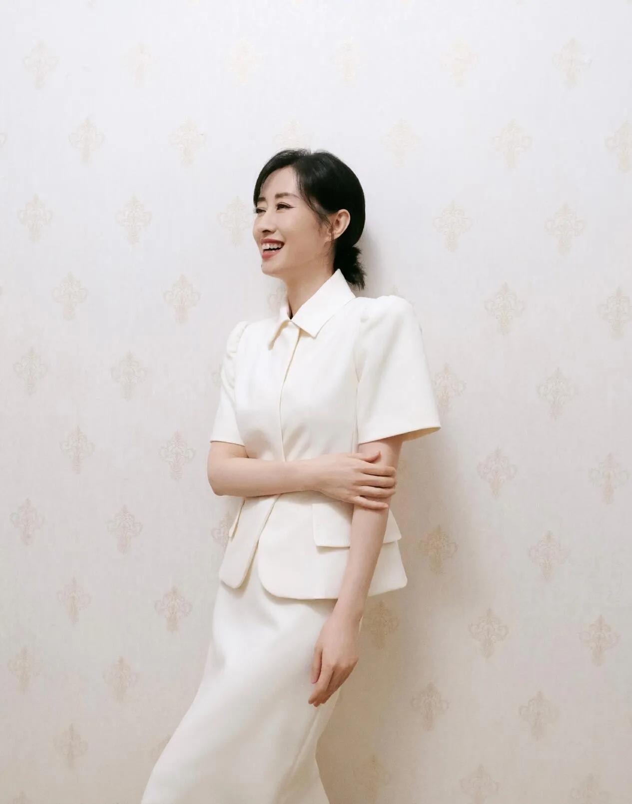 被刘敏涛的白色套装狠狠拿捏!✨ 简约不简单的米白西装套装,短袖设计自带夏日清爽感。挺括面料完美塑形,收腰设计藏肉显瘦,下摆的口袋细节点缀精致。一身纯白干净大气,红唇浅笑,从容优雅,这才是真正的“高级感”穿搭,60后姐妹照搬就对了!刘敏涛最新造型
