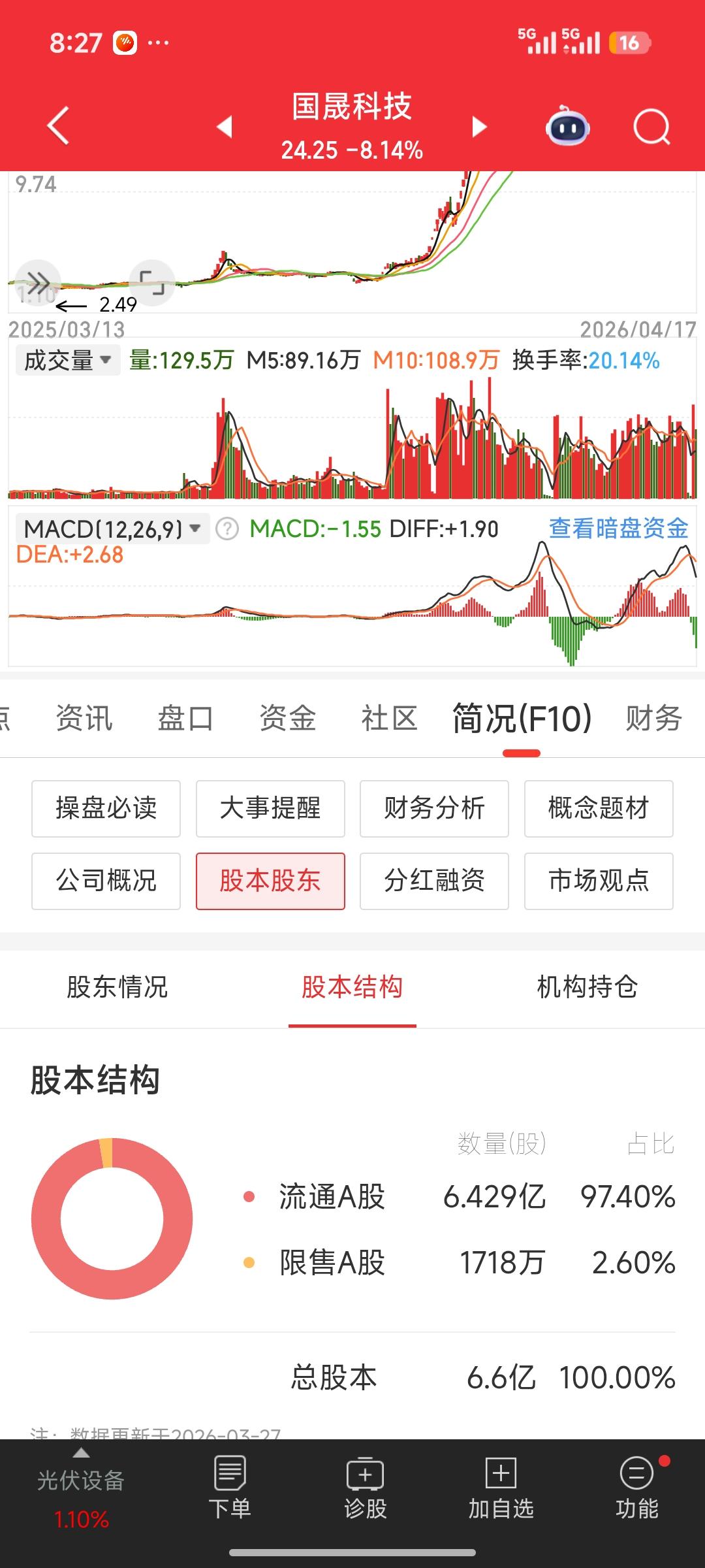 从股本结构看,公司流通盘仅6.429亿股,占比97.40%,股本小、筹码轻,极容易被资金控盘拉升。