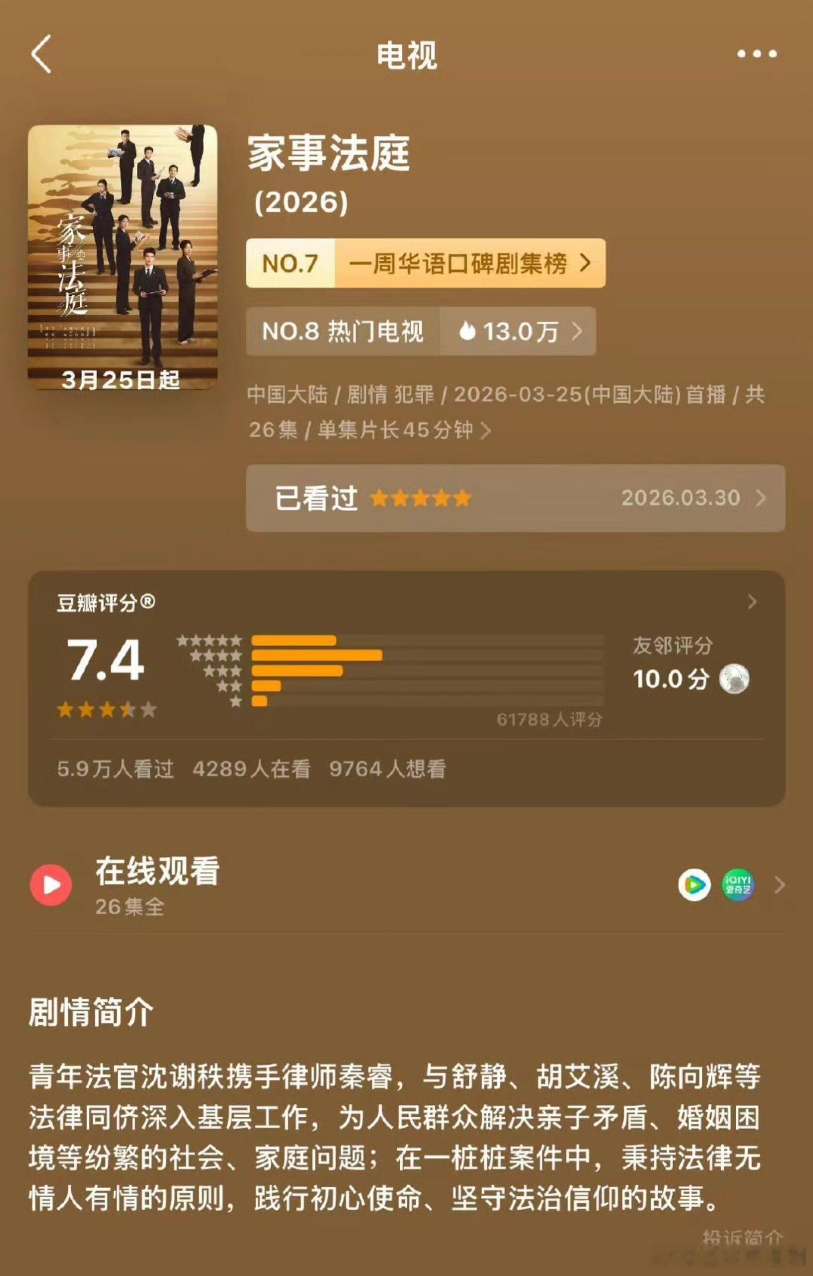 龚俊《家事法庭》不仅被官方认证法治剧收视冠军,同时评分又又又涨了,真正热度口碑齐