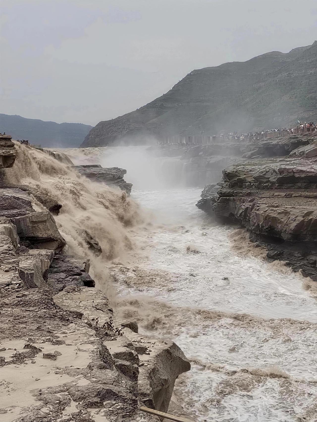 观赏壶口瀑布,那场面简直绝了!站在瀑布脚下,巨流自高处飞泻而下,仿若银河决堤,溅起的水花似碎玉般四下飞溅,打在脸上凉飕飕的。