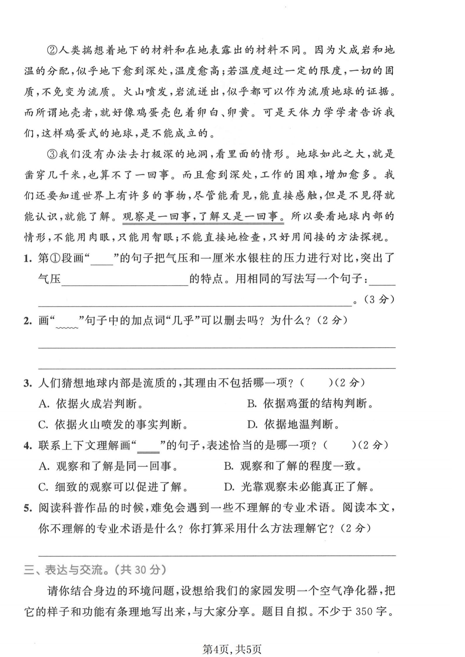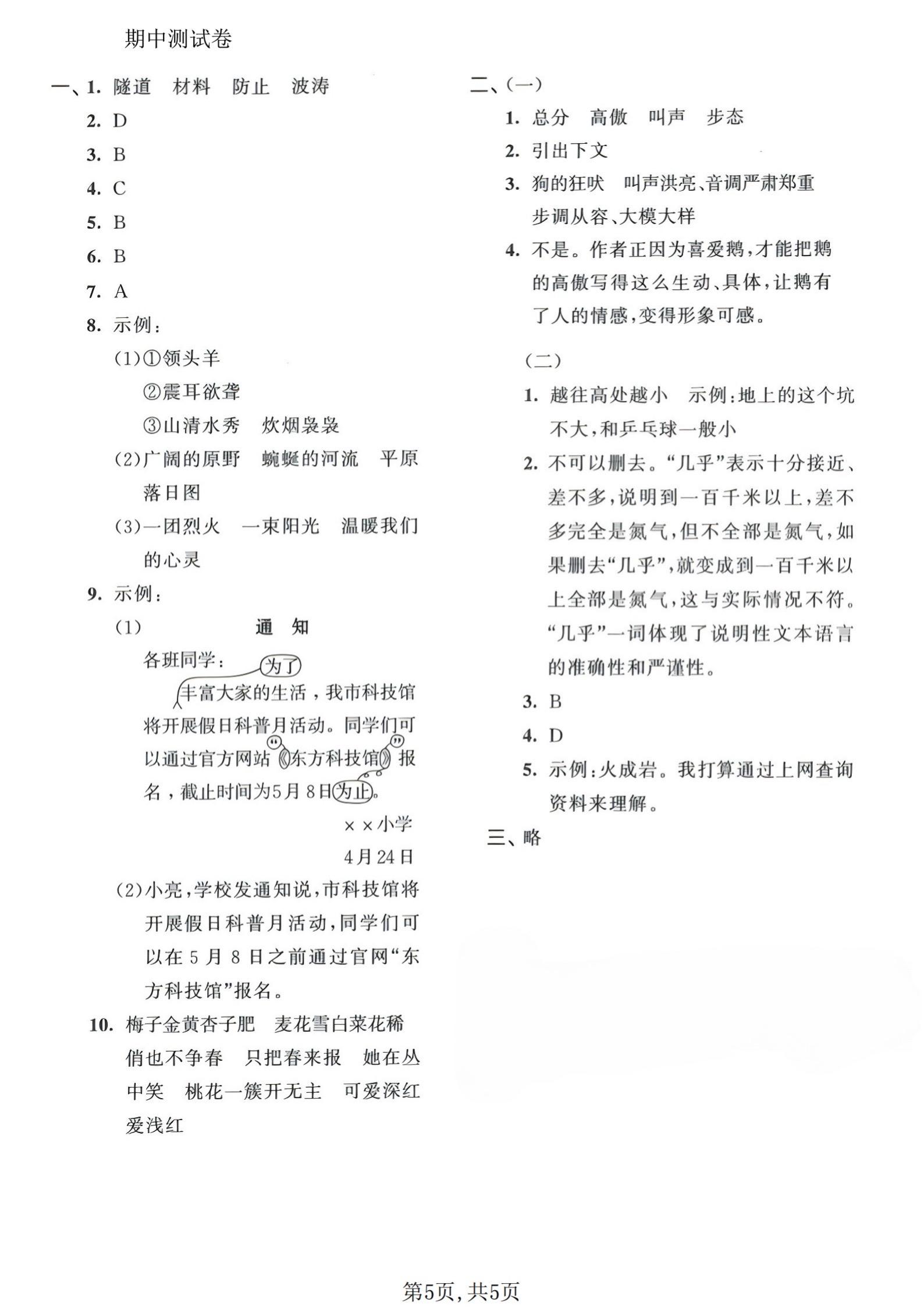 小学四年级下册语文期中卷!附答案!家长们别再乱找卷子了! 这套四年级下...