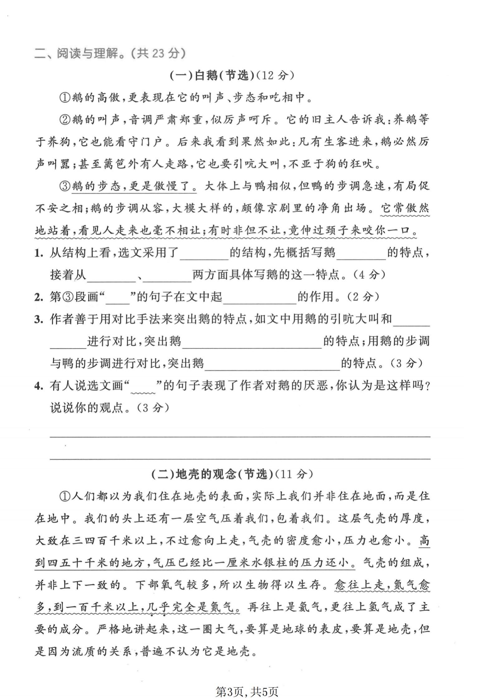 小学四年级下册语文期中卷!附答案!家长们别再乱找卷子了!