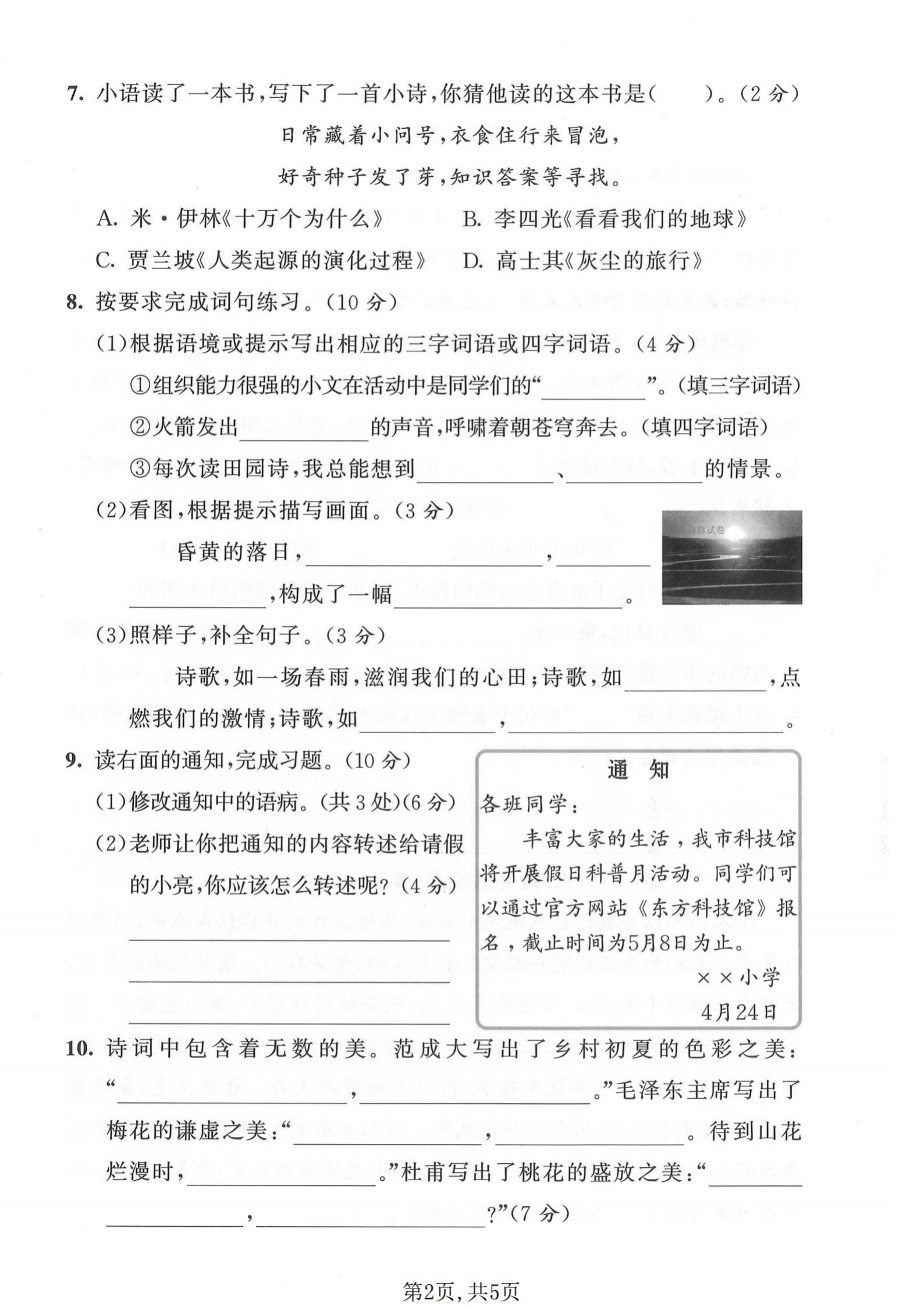 覆盖全册重点,字词、阅读、古诗全考点都有,