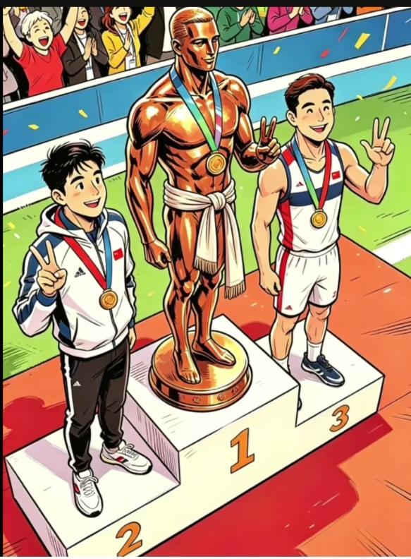 〔看图猜成语〕 图中画面太精彩; 领奖台上冠军得; 得了冠军就是牛; 你能想到啥