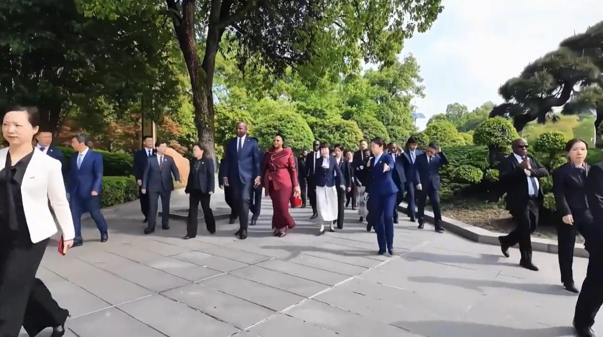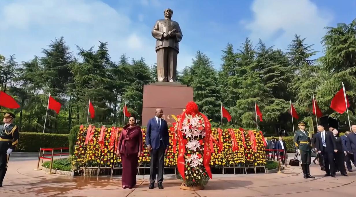 莫桑比克总统查波向毛泽东同志铜像敬献花篮!4月17日查波携手夫人到访湖南韶山,乘车抵达韶山毛泽东广场,然后向毛泽东同志铜像敬献花篮,这是对中莫传统友谊的崇高致敬。